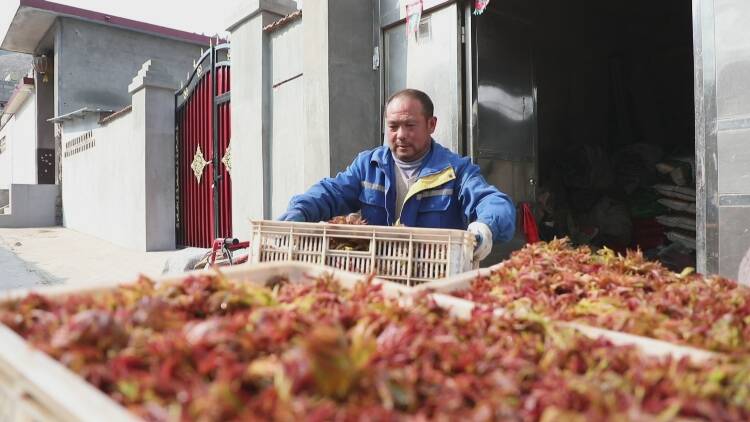 还有的香椿芽经统一包装后,被送往提前预订的客户手中。