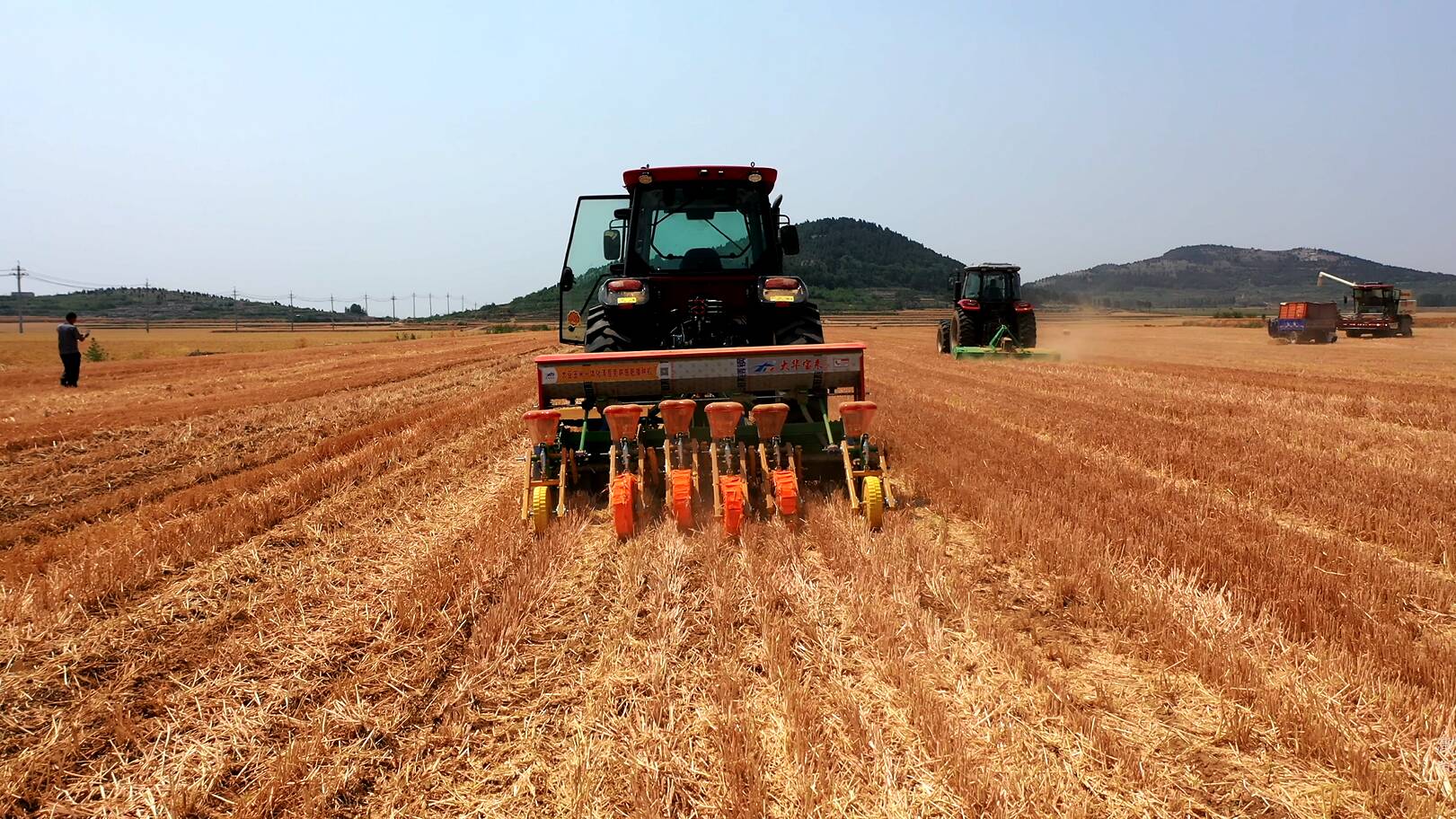 目前,孝直镇的冬小麦已经进入收获期,在种粮大户姬广涛承包的麦田里记者看到,数台大型机械正紧张忙碌的进行收割作业。姬广涛承包了1700多亩麦田,今年,孝直镇积极向种粮大户推广免耕播种机械,省略了土地的深翻、旋耕等环节,播种时间提前了一周左右,为冬小麦的生长争取了时间。利用无人驾驶自动导航系统,使播幅更精准,提高了小麦产量。