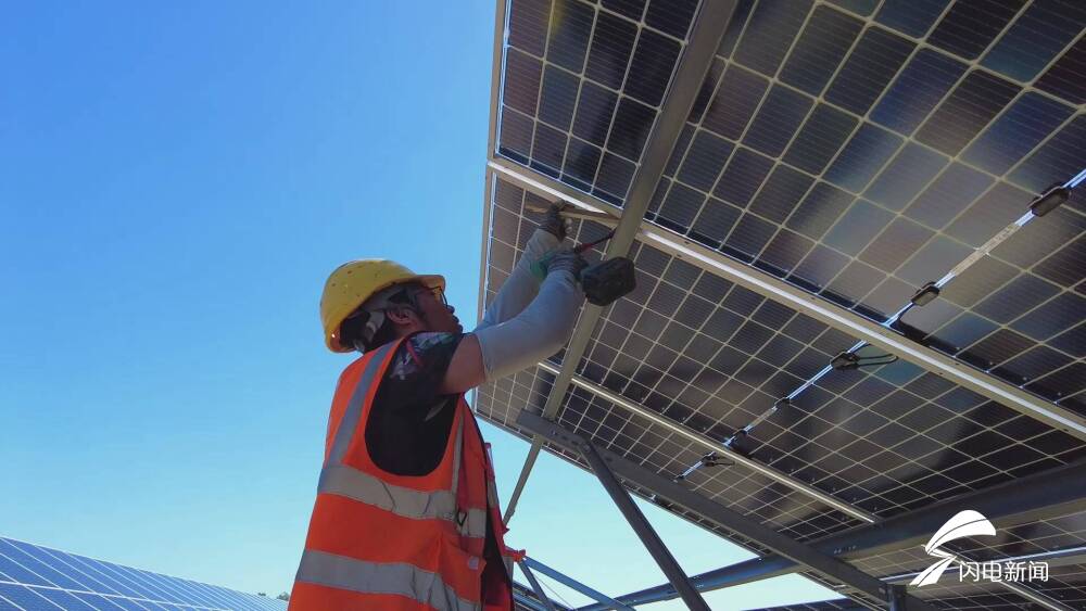 齐鲁网·闪电新闻9月7日讯 眼下,在昌邑市龙池100MW集中式地面光伏项目的建设现场,光伏板的安装工作正有序进行,一期项目预计于2023年底前建成并网发电。