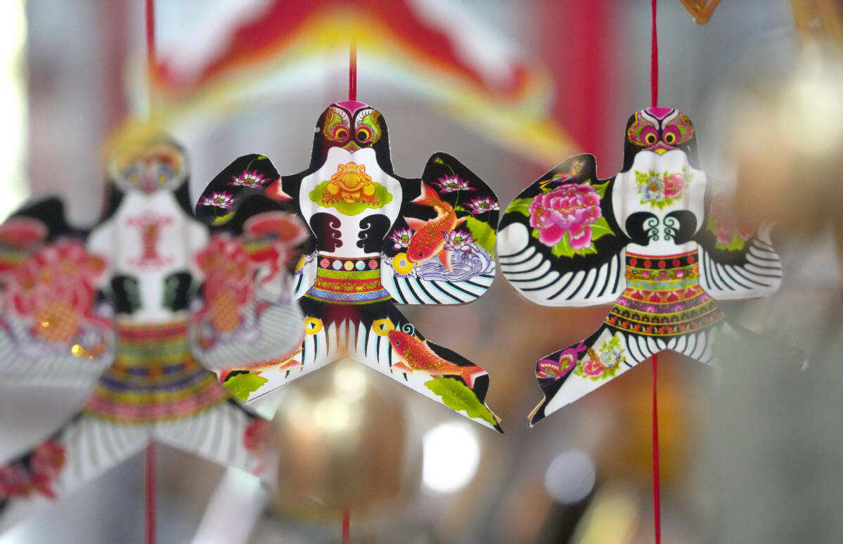 Creative cultural products based on kites are pictured at a kite workshop in the Hanting district of Weifang, East China's Shandong province, Oct 14, 2024. [Photo/Xinhua]
