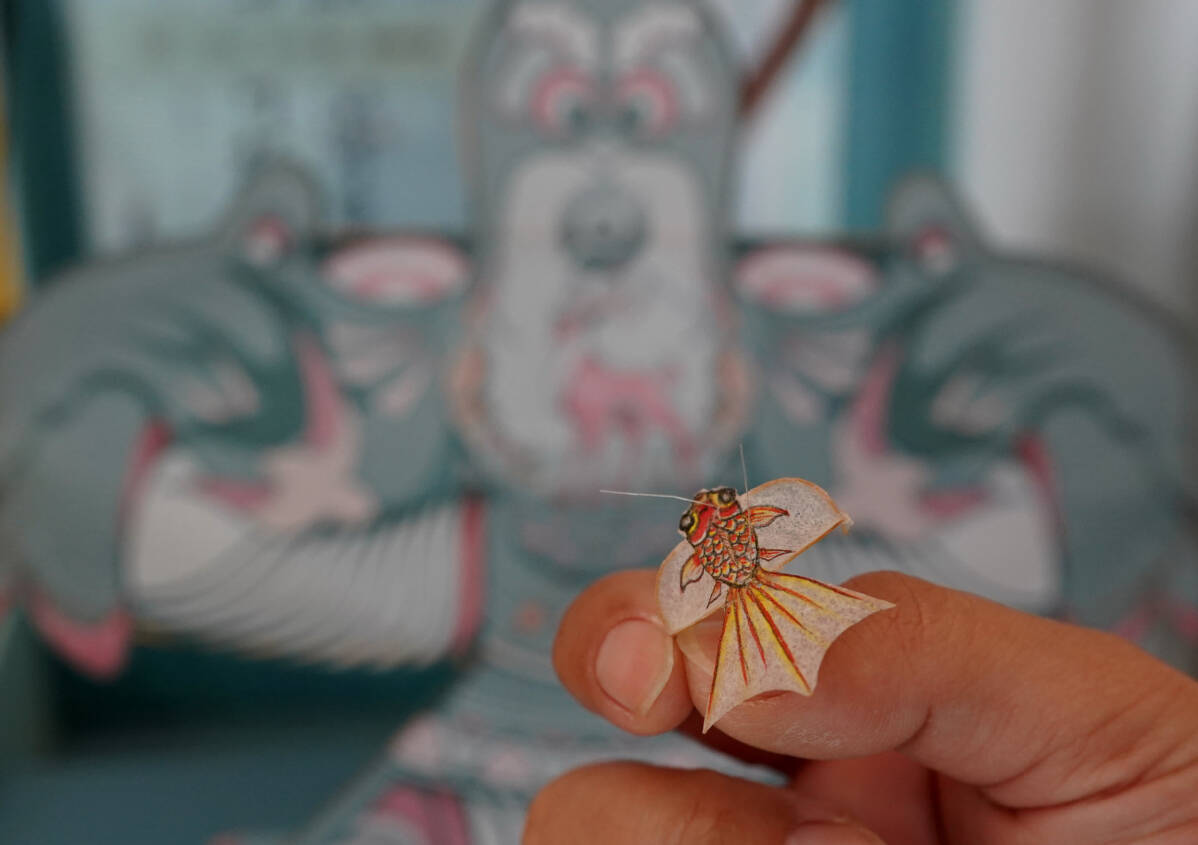 A miniature kite is pictured at a kite workshop in Hanting district of Weifang, East China's Shandong province, Oct 14, 2024. [Photo/Xinhua]
