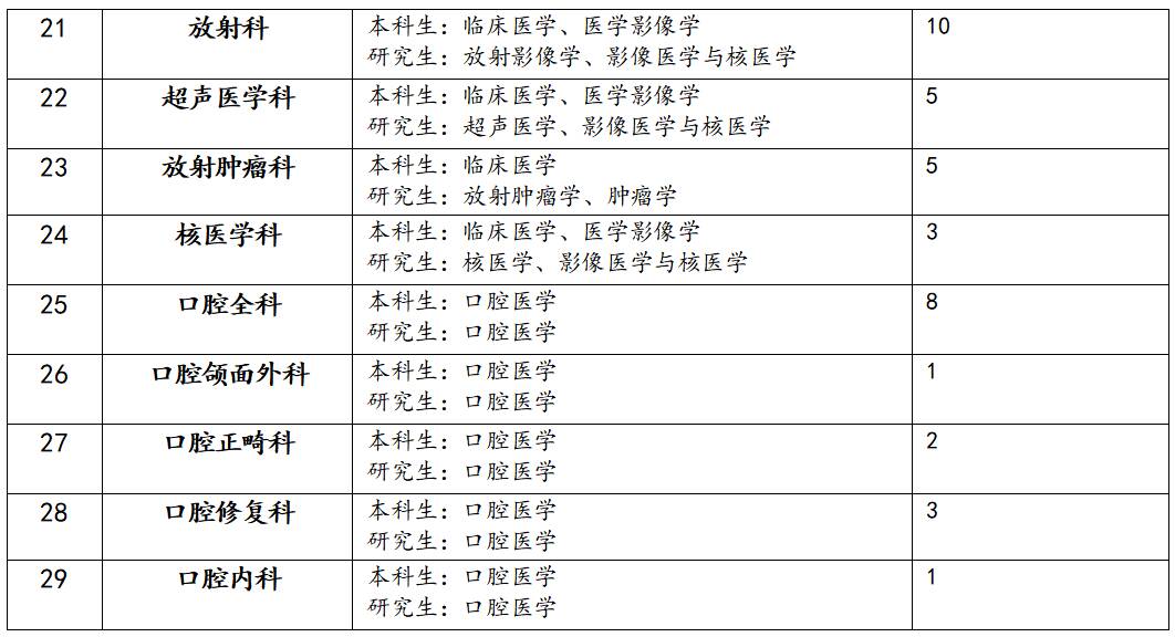 1、社会化住院医师:拟从事临床医疗工作的高等院校医学类相应专业(指临床医学类、口腔医学类)本科及以上学历毕业生(详见招生专业列表);