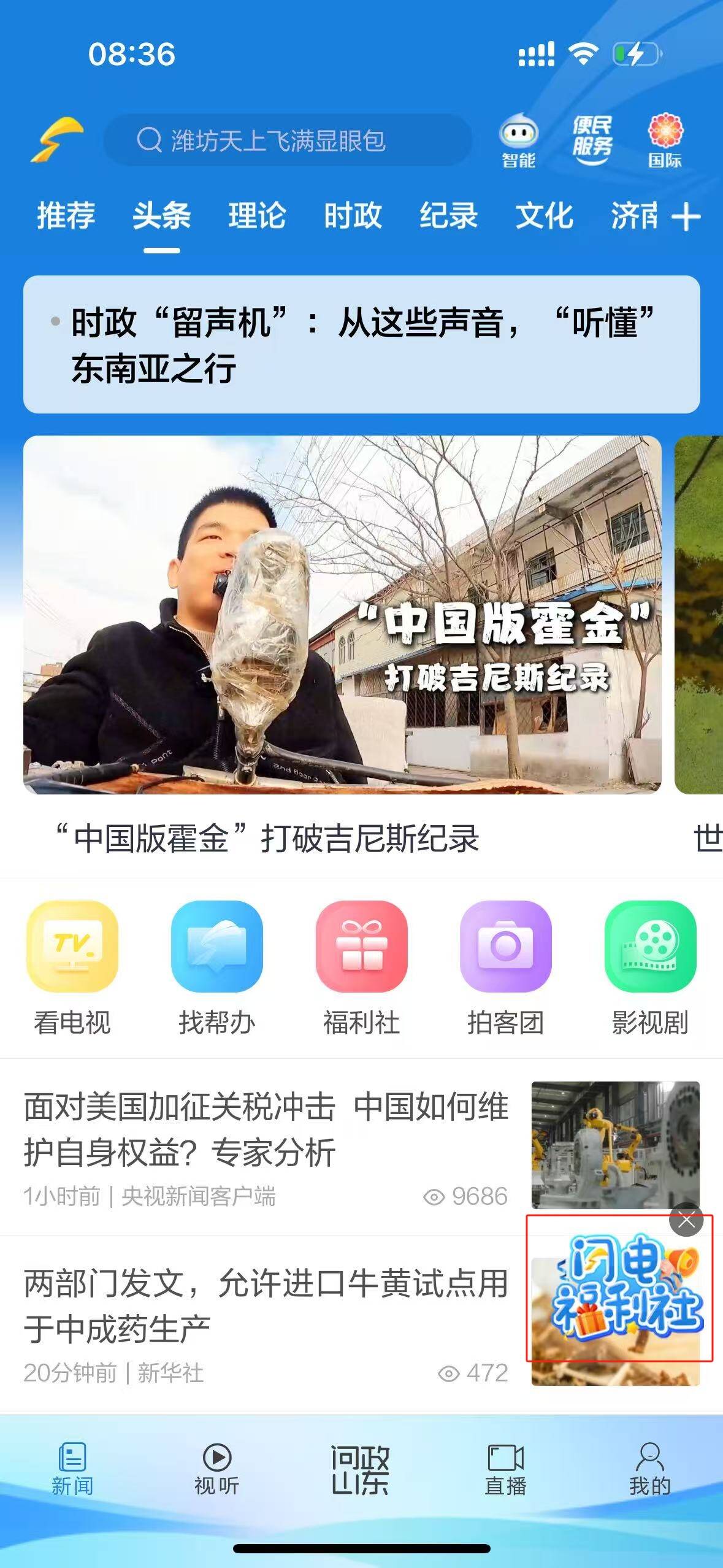 进入“闪电新闻”首页,点击右下角“闪电福利社”参与抽奖