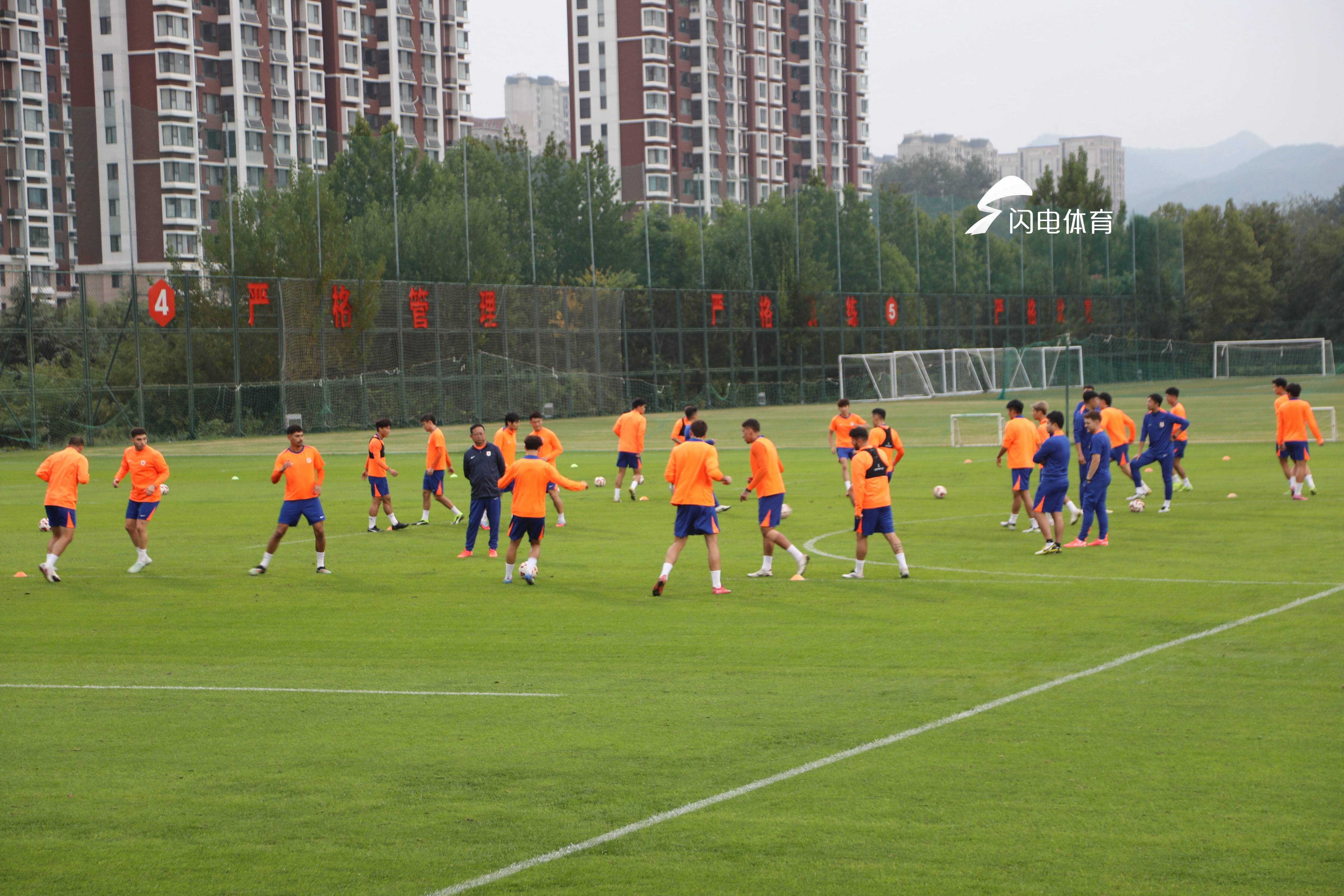 闪电体育10月3日讯 10月4日晚,泰山队将坐镇主场迎战云南玉昆,今天下午,泰山队在俱乐部基地进行了赛前训练,共24人参与。五位外援泽卡、瓦科、克雷桑、马德鲁加、洛佩斯均在列,年轻小将方面,彭逸翔、梅帅军、彭啸、史松宸、谢木西丁、齐千程参与合练。门将位置上,王大雷、刘骐玮、孙启航进行训练。
