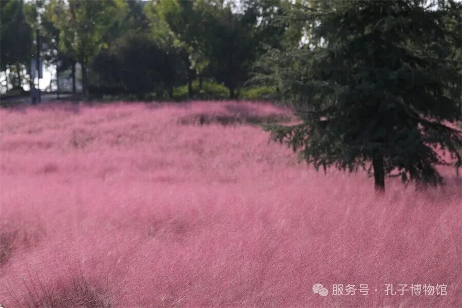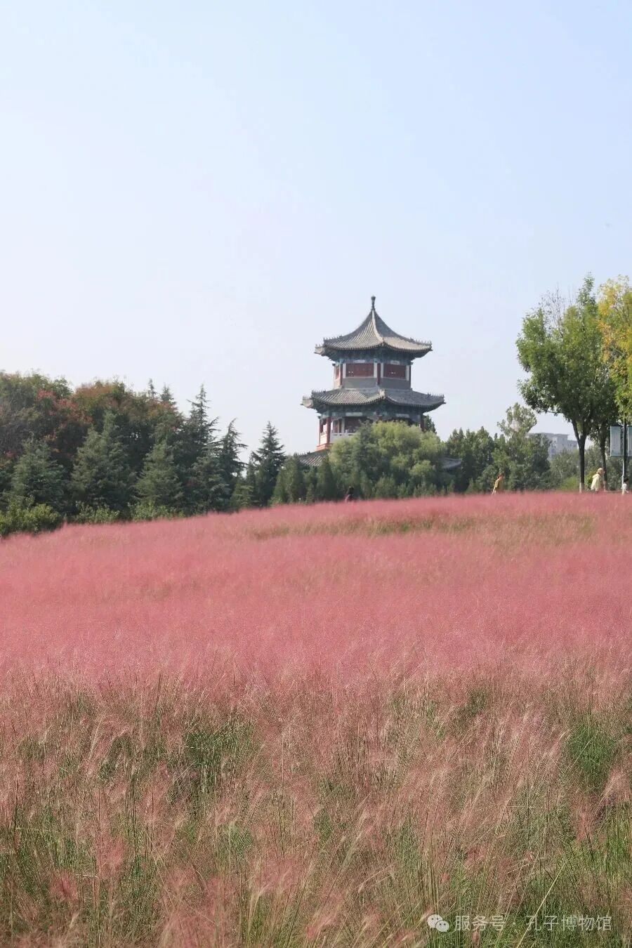 国庆假期正值秋高气爽,孔子博物馆馆区内大片粉黛乱子草悄然绽放,如粉紫色波浪般摇曳生姿,为这个假期增添了一抹浪漫色彩。