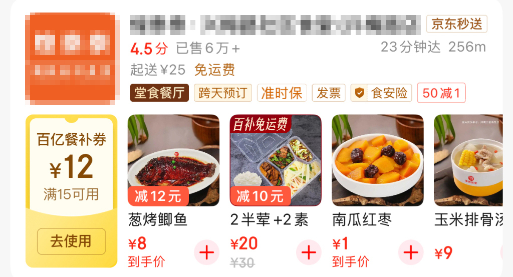京东平台标出了“堂食餐厅”的标识