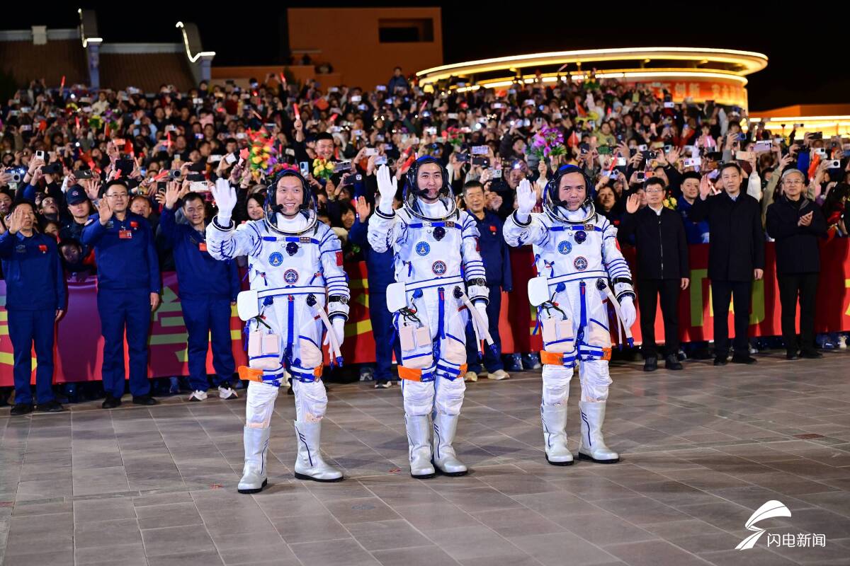 以飞天之姿纪念先辈,以坚定步伐探索太空。10月31日晚,欢送人群齐聚圆梦园广场,为航天员加油。即便隔着直播屏幕,我们依旧心潮澎湃、热泪盈眶。航天员挥手致意,从容出征,便是豪气最生动的注脚。