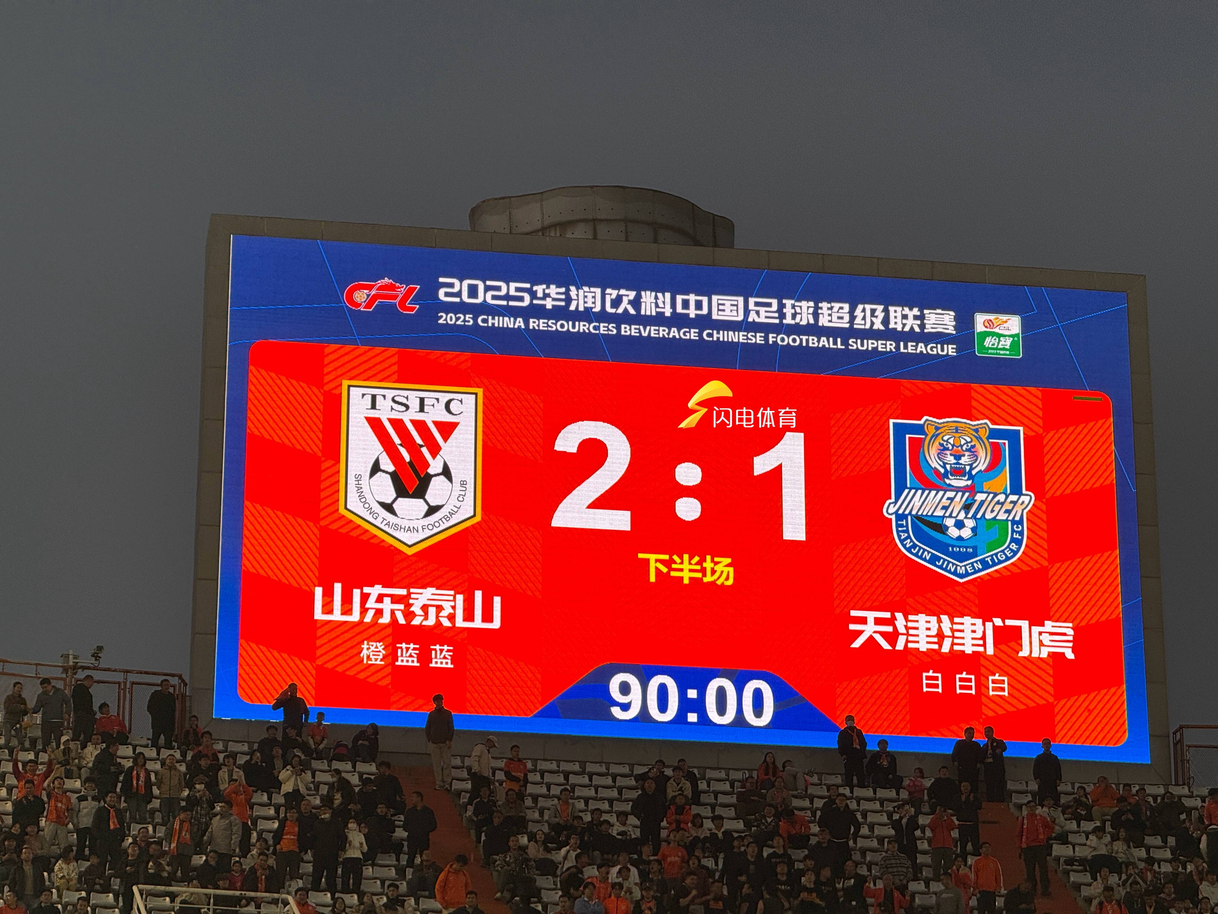 闪电体育11月1日讯 今天,中超联赛第29轮,山东泰山迎战天津津门虎的比赛在济南奥体中心进行,经过90分钟鏖战,最终,卡扎伊什维利远射首开记录,谢文能助攻泽卡头球破门,山东泰山2-1天津津门虎。