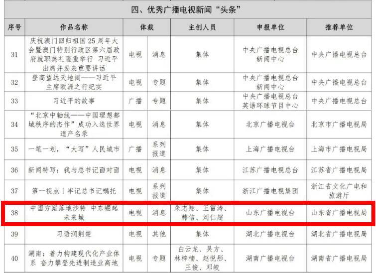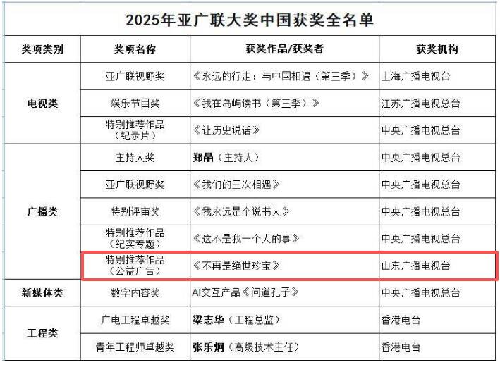 (注:我台是本届亚广联奖山东省唯一获奖媒体)