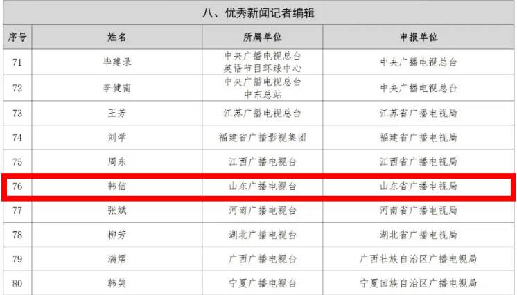 5、优秀新闻记者编辑 韩信(融媒体资讯中心)