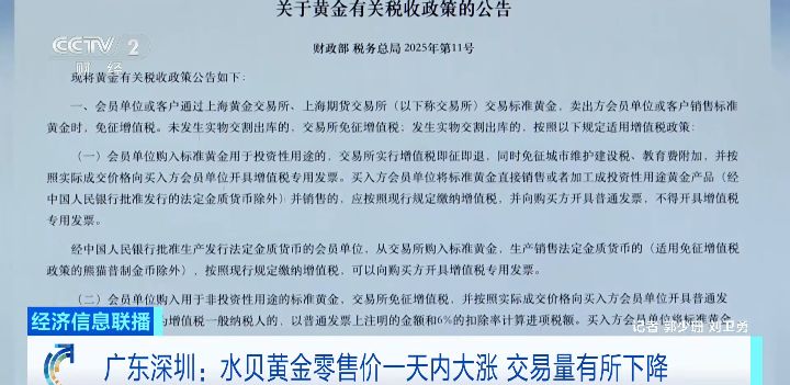 上周六(11月1日),财政部、税务总局联合发布黄金税收新政,受新政影响,在中国最大的黄金批发市场——深圳水贝,黄金零售价已经出现了明显变化,来看记者今天的探访。