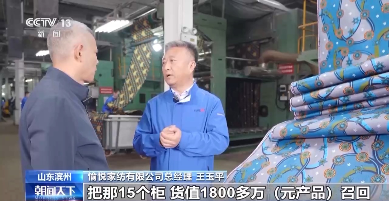愉悦家纺有限公司总经理 王玉平:我们毫不犹豫地把15个柜、货值1800多万元的产品召回,并按废品处理。这个做法很值得,无论是最终的消费者还是经销商,看到我们有大的决心去抓质量。