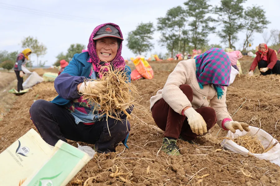 齐鲁网·闪电新闻11月6日讯 近日,文登区泽库镇南口村的400亩西洋参田里,起参机“轰隆隆”驶过垄间,翻出带着泥土潮气的鲜参,参农们紧随其后,弯腰捡拾、快速装袋,一派繁忙景象。