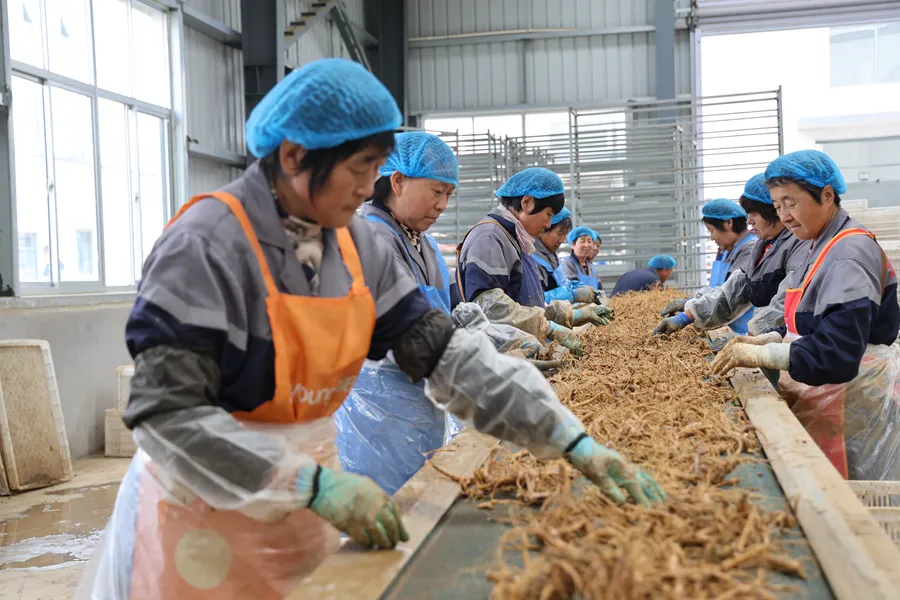2023年底,国家卫生健康委、市场监管总局联合公告,将西洋参纳入药食同源目录,以往靠初加工的参农和企业,瞄准精深加工,向全国康养市场发力。如今,文登西洋参产业集群已入选山东省医养健康特色产业集群,30余家企业入库,拿下100余项专利,形成了以威海文登区道地参业发展有限公司、威海人生药业有限公司、威海颐佰堂中药饮片有限公司等企业为龙头引领的行业布局。