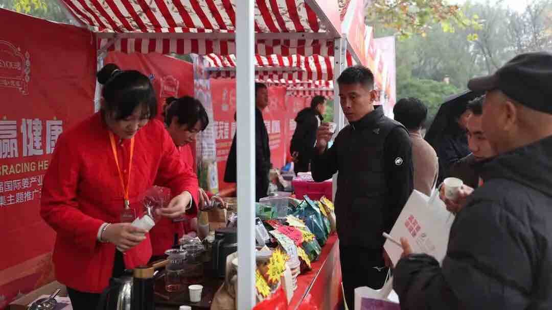 市集内,65个展位一字排开,汇集了来自莱芜15个街道(镇)的54家精选企业,既有泰顺斋酱肉、莱芜南肠、齐鲁干烘等传统名吃,也有黑蒜、姜茶、姜精油等深加工产品,更有明利蔬菜、山农酥梨等绿色农产。在非遗展示区,燕子石制作技艺、鲁王工坊锡雕、面塑等莱芜非遗代表性项目集中亮相,传承人现场演示精湛技艺,游客可近距离感受传统工艺的独特魅力。同时,市集设置了生姜试吃、姜制品DIY、打卡赢文创等趣味活动,让购物过程充满惊喜。