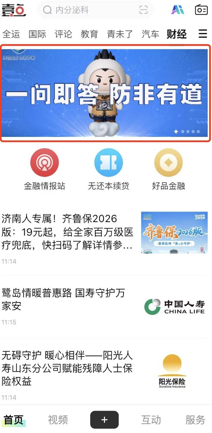 下载“齐鲁壹点APP”,点击“财经”频道,点击“一问即答 防非有道”轮播图。