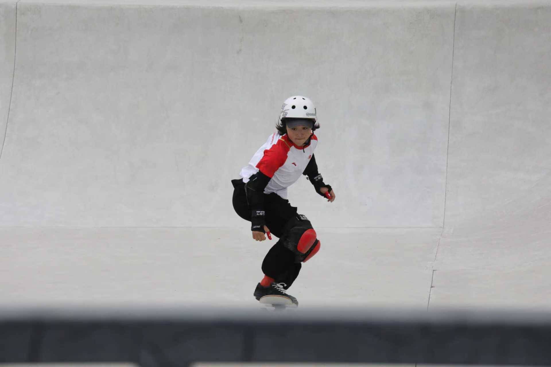 作为中国新生代滑板运动员,孟令妍擅长碗池项目,在今天的决赛中,她以出色的表现完成三轮的比试。