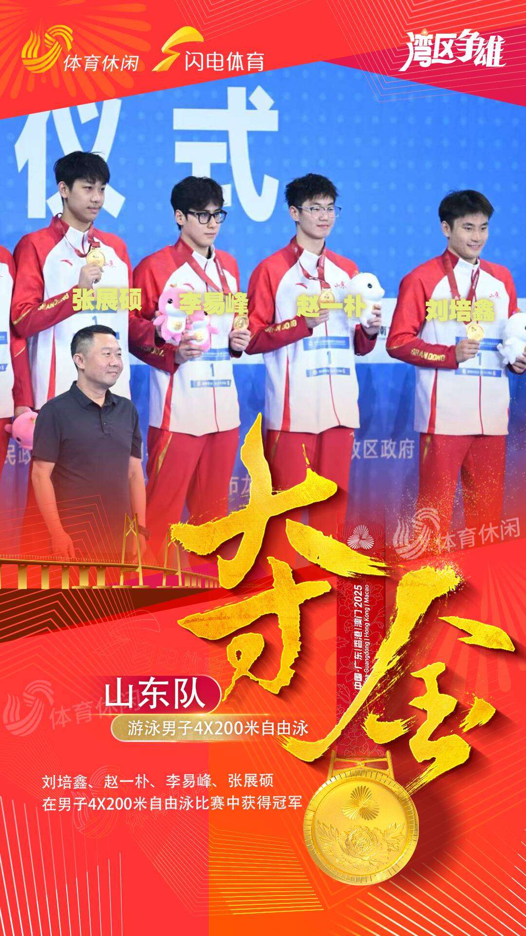 今晚,十五运游泳项目继续进行。由刘培鑫、赵一朴、李易峰、张展硕组成的山东队在男子4X200米自由泳比赛中拼尽全力,最终获得冠军,为山东代表团再添一枚金牌。