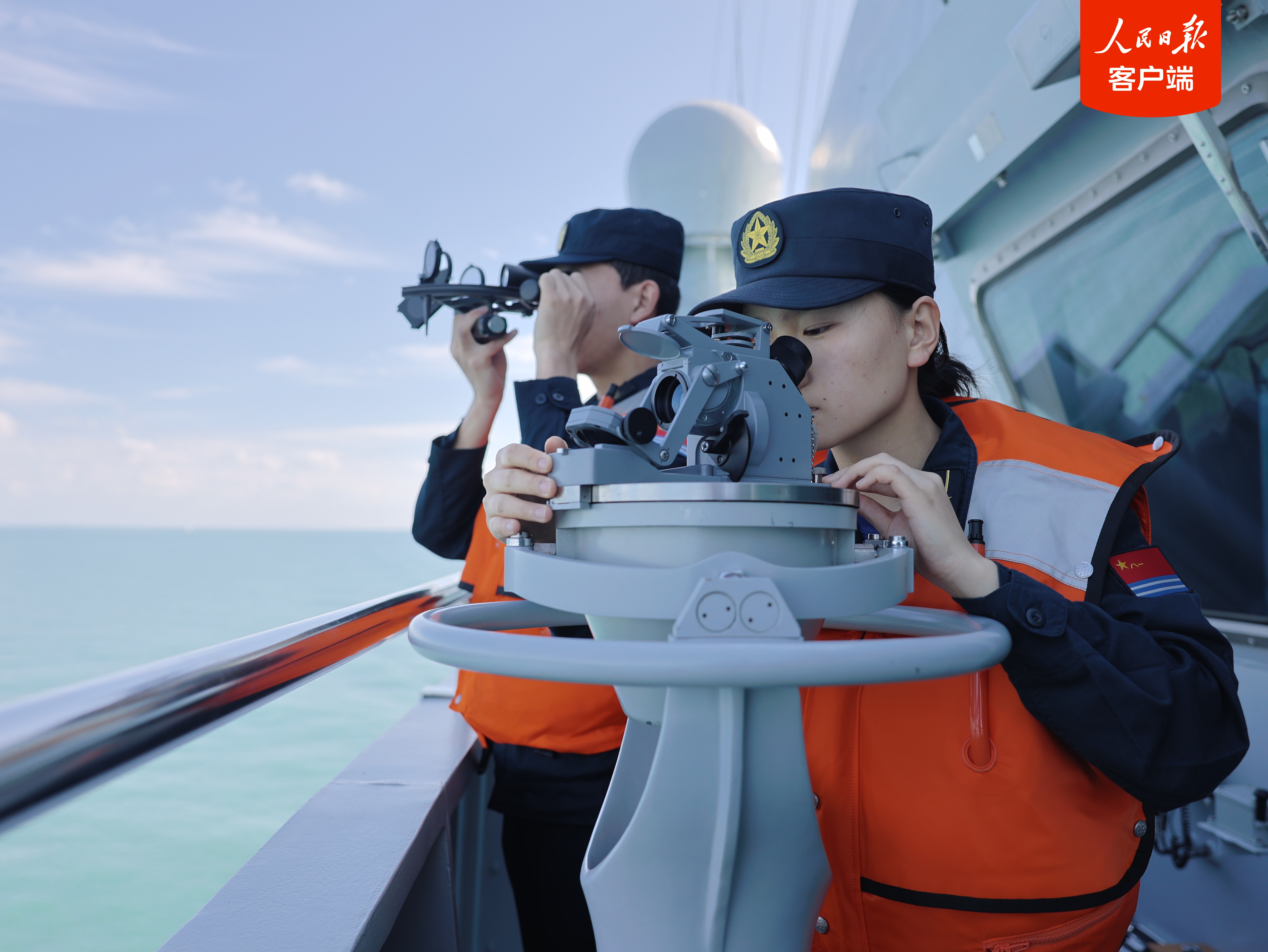 四川舰官兵正在观察方位。