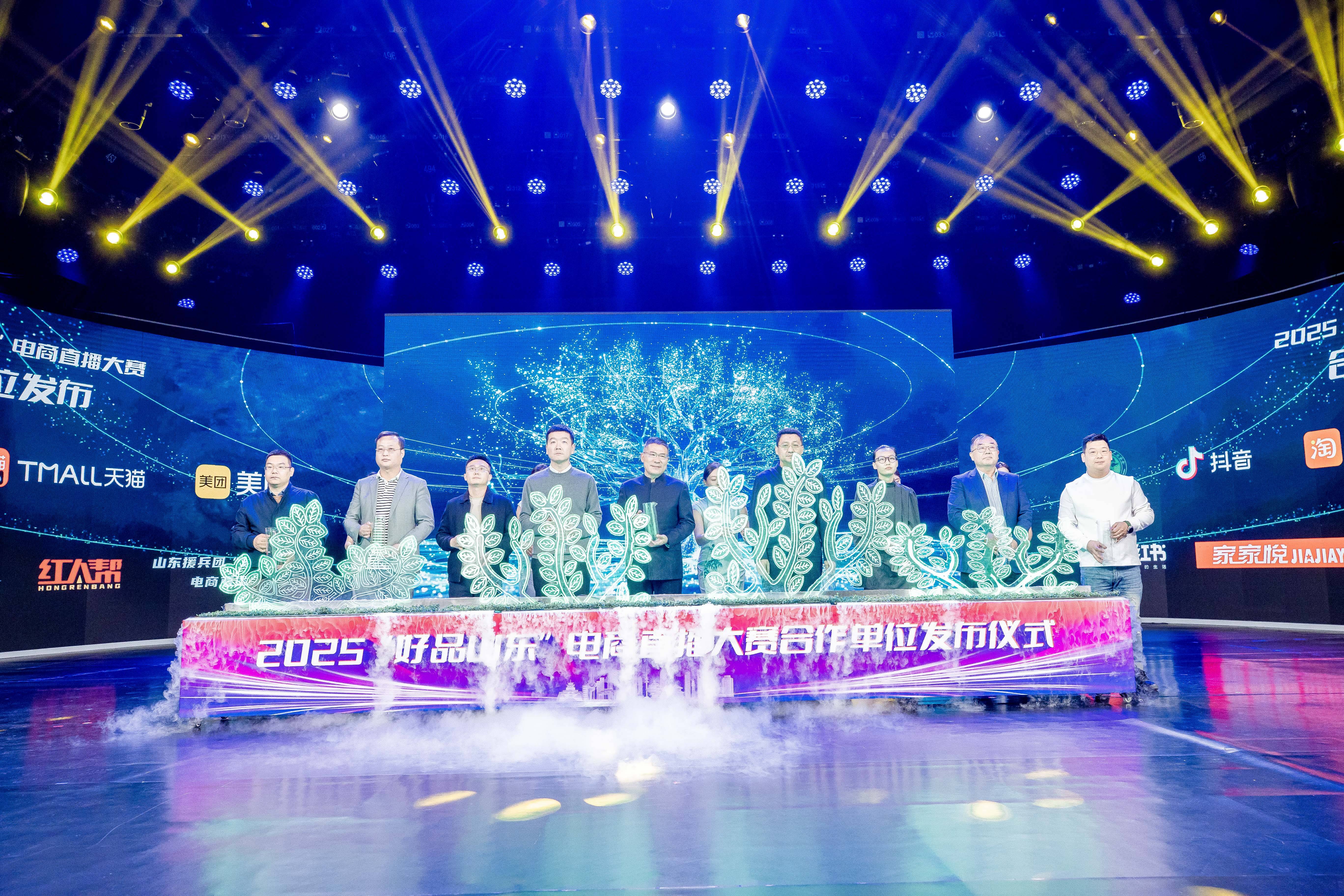 在全场倒计时中,与会主要领导、援建干部代表及首届冠军选手共同按下“开播键”,正式启动2025“好品山东”电商直播大赛。这也标志着山东在“以赛促产、以赛育才”的道路上迈出更坚实的一步。