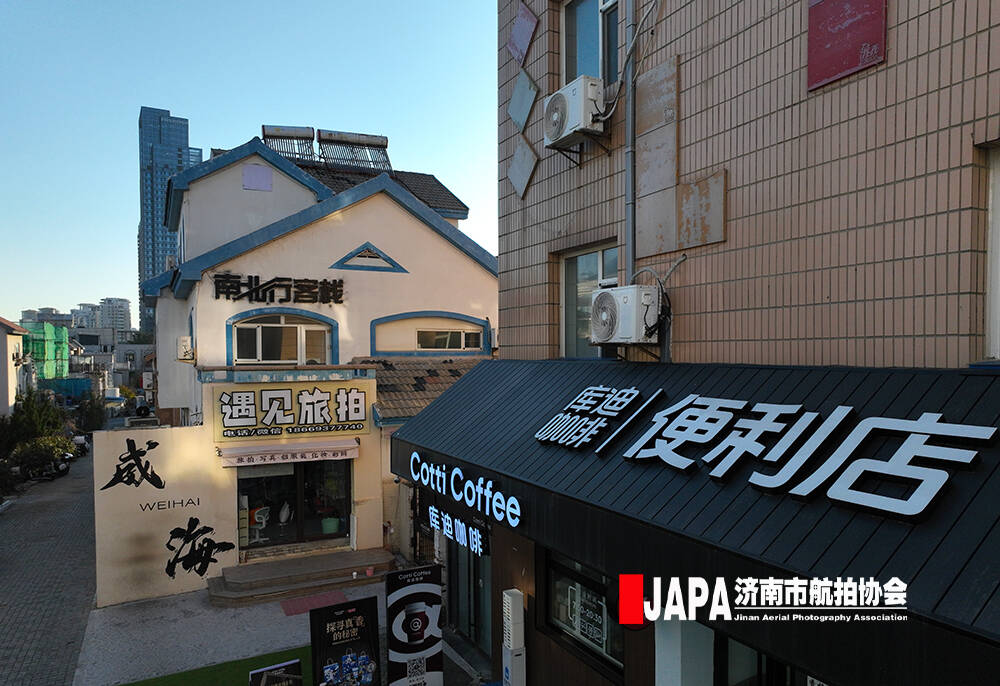 山海相拥:自然禀赋造就 “网红街”。火炬八街地处威海环翠区北部,南接城市腹地,北邻威海国际海水浴场,街道沿山坡顺势向北延伸,形成 “南高北低” 的独特地势。行走在街上,向北眺望可直览渤海湾的辽阔海景,湛蓝海面与澄澈天空无缝衔接;两侧建筑以 “白墙 + 蓝窗 / 栏杆” 为主要风格,搭配沿街盛放的三角梅、木槿花,营造出兼具清新与浪漫的视觉体验,因此被游客亲切称为 “威海小镰仓”。