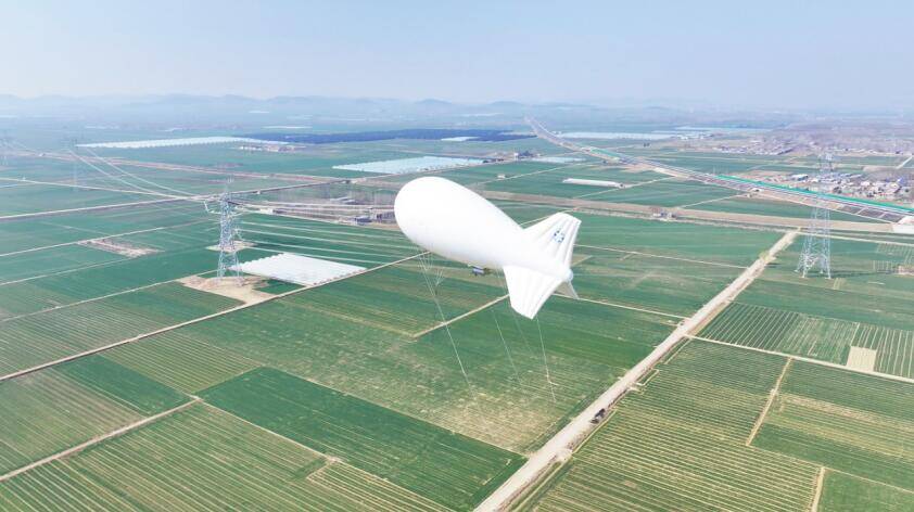 ▲国网山东电力应用浮空器开展电力作业现场安全管控