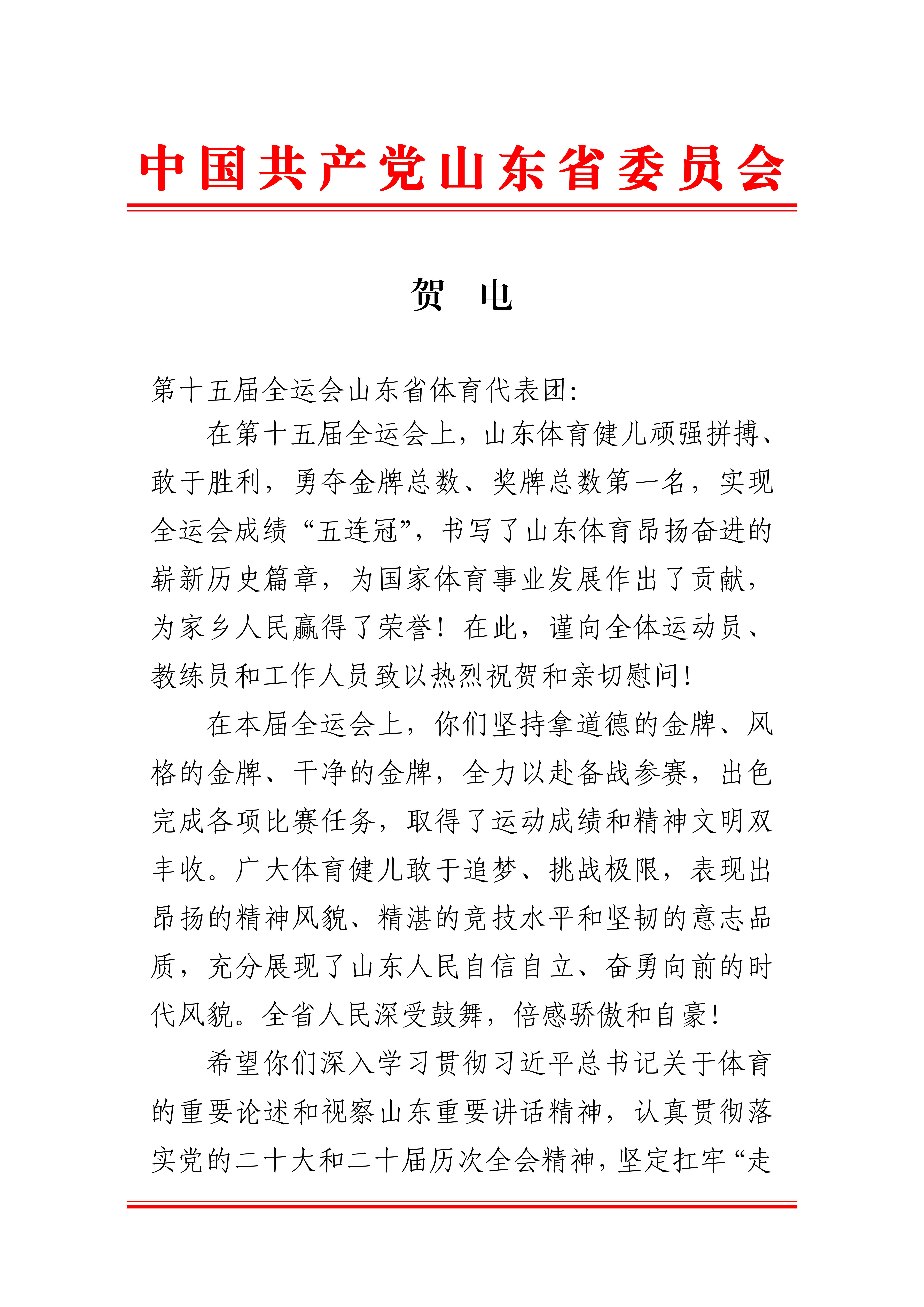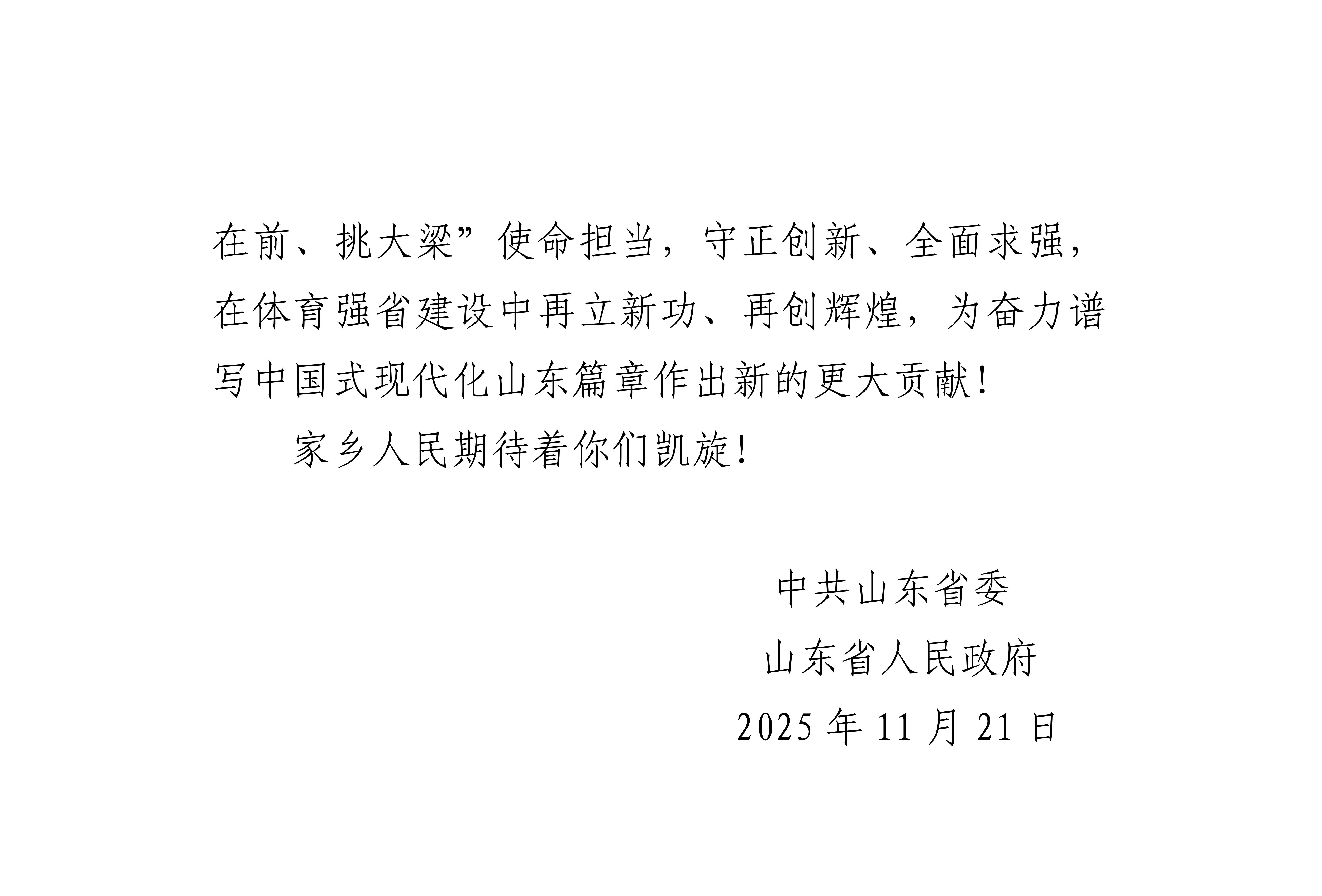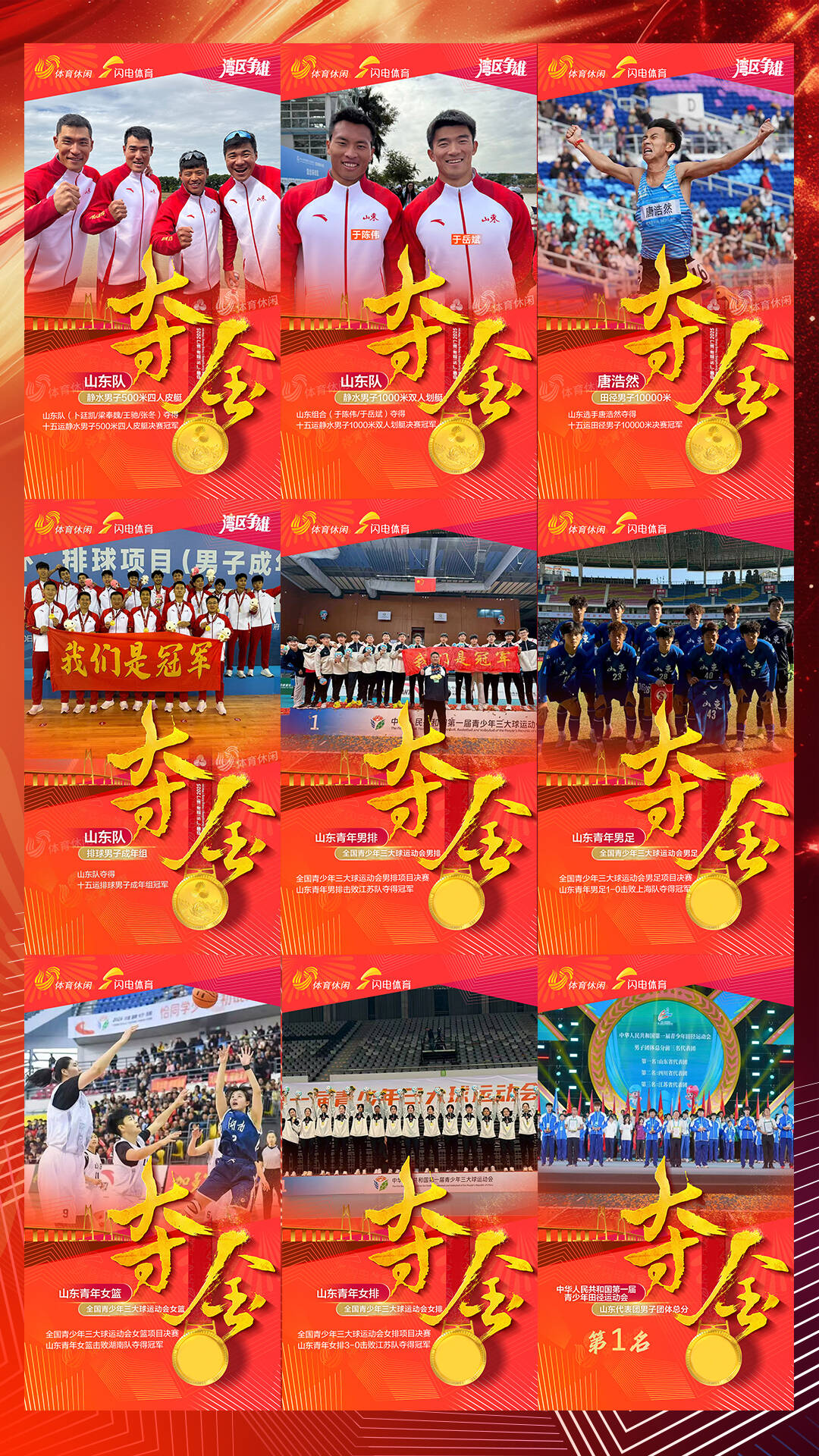 同时,根据国家体育总局印发的相关比赛规程,2024年首届全国青少年三大球运动会、2025年首届全国青少年田径运动会、第十四届全国冬季运动会(公开组)等三个运动会的比赛成绩计入第十五届全运会总成绩册,山东共计入10枚金牌、8枚银牌、7枚铜牌。合计为59枚金牌,山东实现全运五连冠。