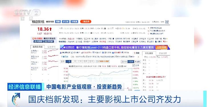 记者注意到,今年国庆档电影的背后几乎集齐了国内主要影视上市公司。假期A股休市,但在节前,影视板块已出现明显升温迹象。在节前最后一个交易日,横店影视收盘涨停,华策影视上涨5.57%,光线传媒、北京文化等小幅跟涨。