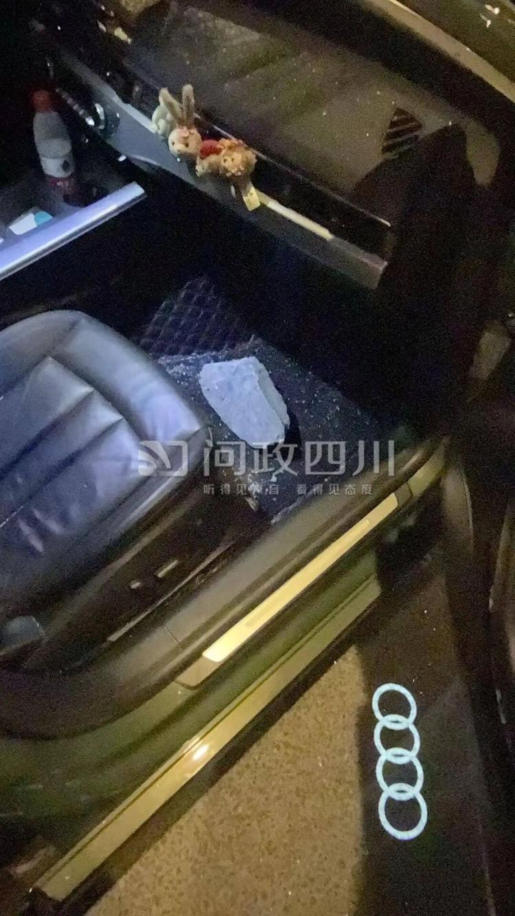 10月10日,当事人在问政四川平台投诉表示,事发在10月8日20点40分左右, 其自驾到达九寨沟沟口藏王广场附近,在车辆行驶过程中,路边出现落石,石块很大,导致车辆前挡风玻璃全碎,中控损坏,人员擦伤。