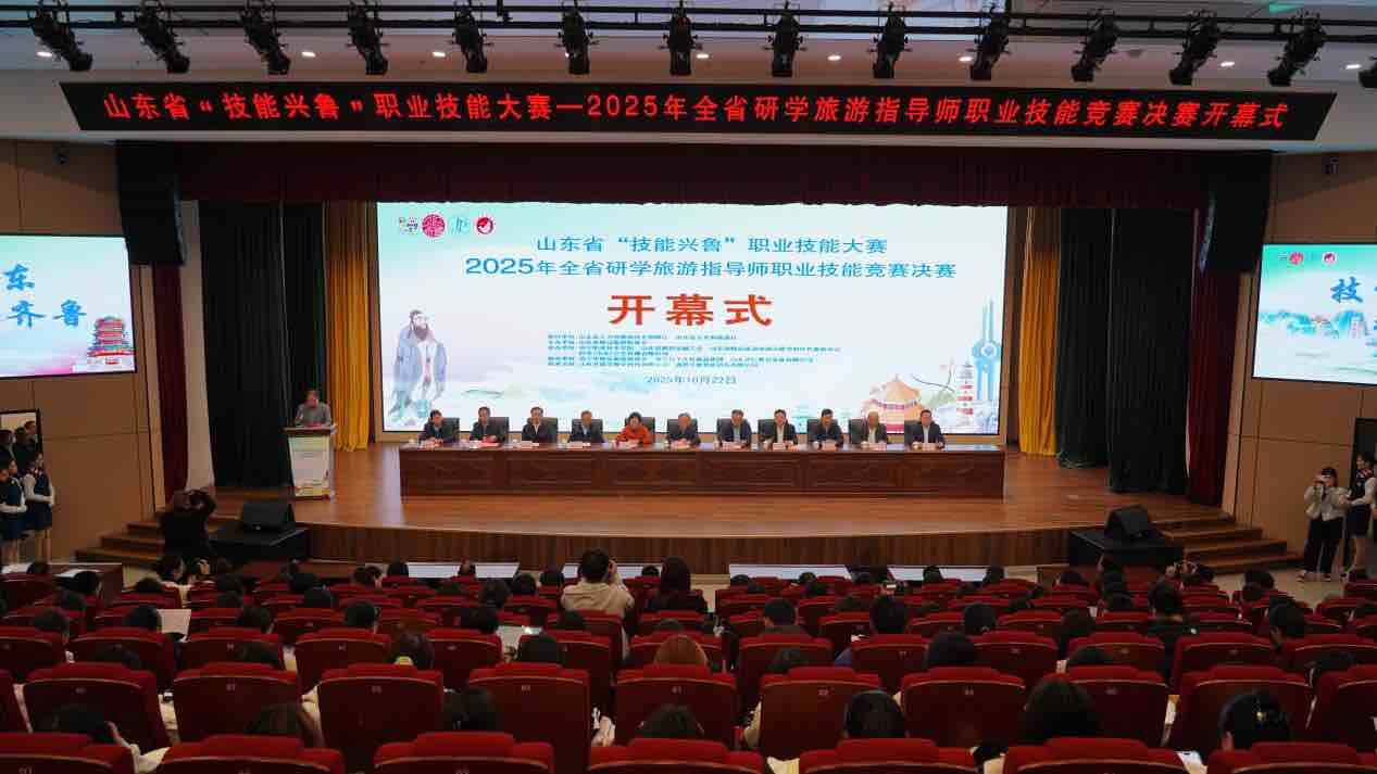 齐鲁网·闪电新闻10月23日讯 10月22日,由山东省人力资源和社会保障厅、山东省文化和旅游厅指导,山东省精品旅游促进会主办,济宁职业技术学院、山东省财贸金融工会、山东省精品旅游促进会研学和红色旅游分会、好学(山东)文化传播有限公司承办,济宁市精品旅游促进会、济宁孔子文化旅游集团、山东华仁教育发展有限公司协办的山东省“技能兴鲁”职业技能大赛——2025年全省研学旅游指导师职业技能竞赛决赛在济宁职业技术学院开赛。山东省委原副秘书长、省精品旅游促进会会长、竞赛评审组组长杜文彬宣布大赛启动。