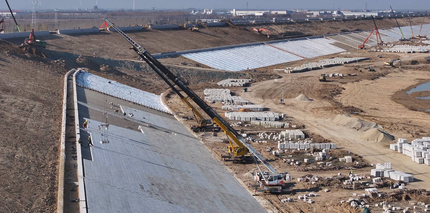 齐鲁网·闪电新闻12月26日讯 隆冬时节,寒意袭人,但在胶州市官路水库工程建设现场却暖意涌动、干劲十足。重型吊车长臂挥舞,工程车辆在冻土路面上来往穿梭,建设者们不畏严寒,坚守在各个作业面,水泥连锁块护坡铺设、引黄济青连接线倒虹吸段清表等工序紧张有序推进,一派热火朝天的攻坚景象。