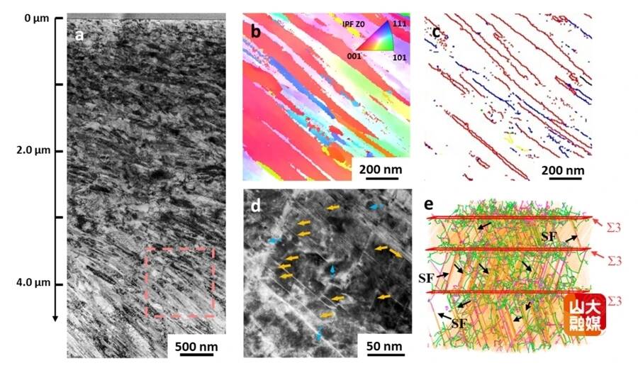 图:梯度纳米结构304核级不锈钢样品的微观结构