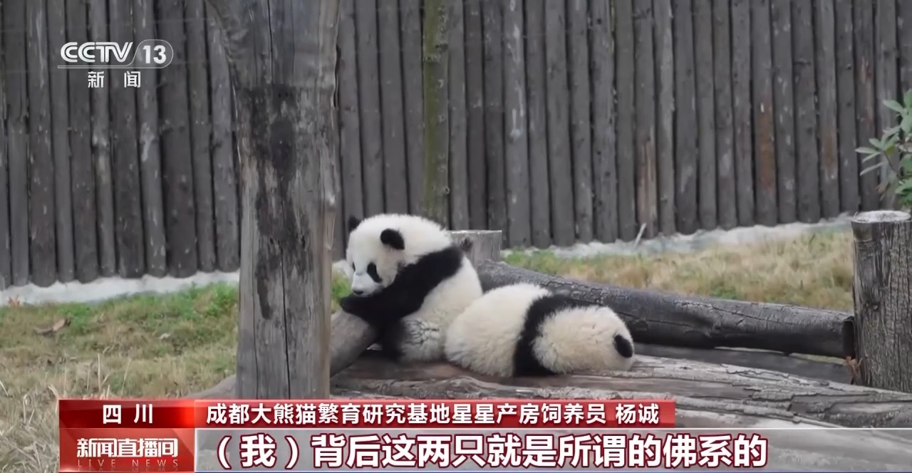 成都大熊猫繁育研究基地星星产房饲养员 杨诚:上图这两只就是所谓的佛系的,就是以睡觉为主,主要原因还是它们现在的年龄稍微小一点。