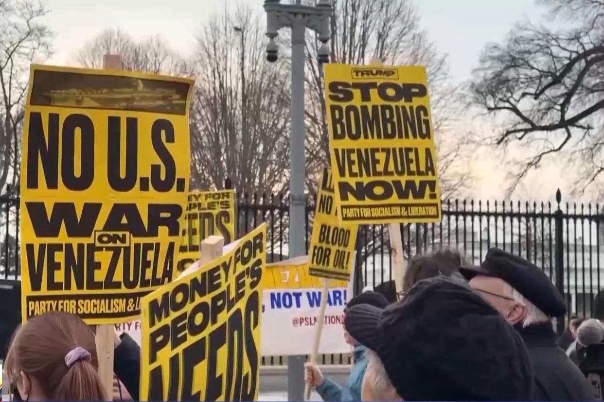 在波多黎各的圣胡安,数千人在联邦法院前集会与和平示威,谴责将加勒比地区用作军事平台,并高呼反对美国干预主义的口号,要求尊重委内瑞拉主权。
