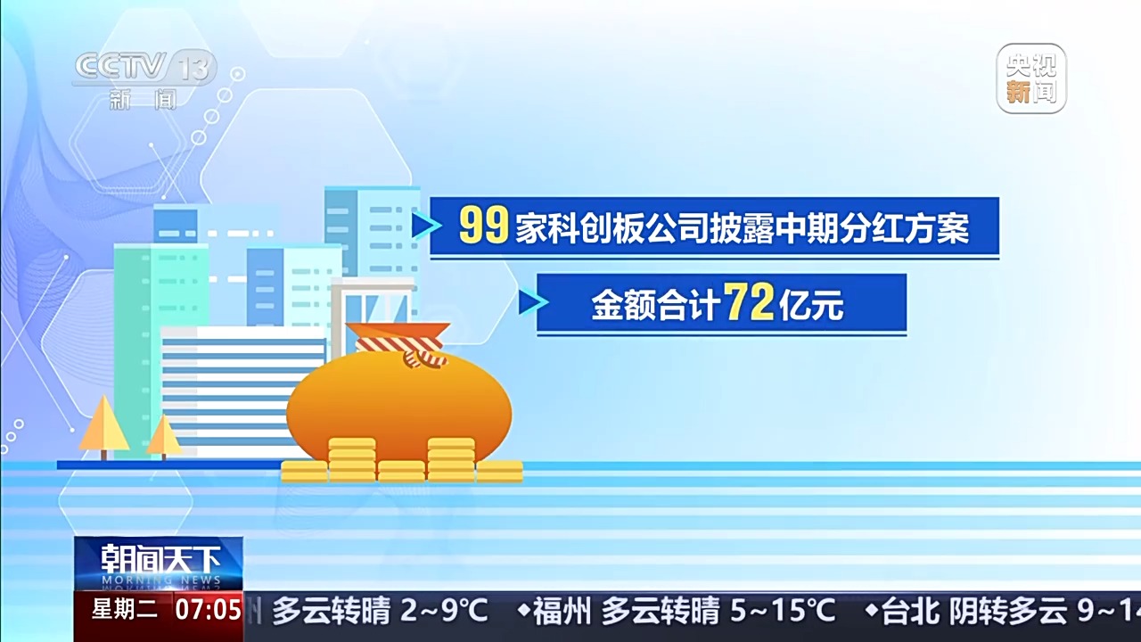 上交所科创板383家公司实施现金分红,板块覆盖率超六成,分红落地实施金额合计382亿元。99家科创板公司披露中期分红方案,金额合计72亿元。