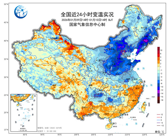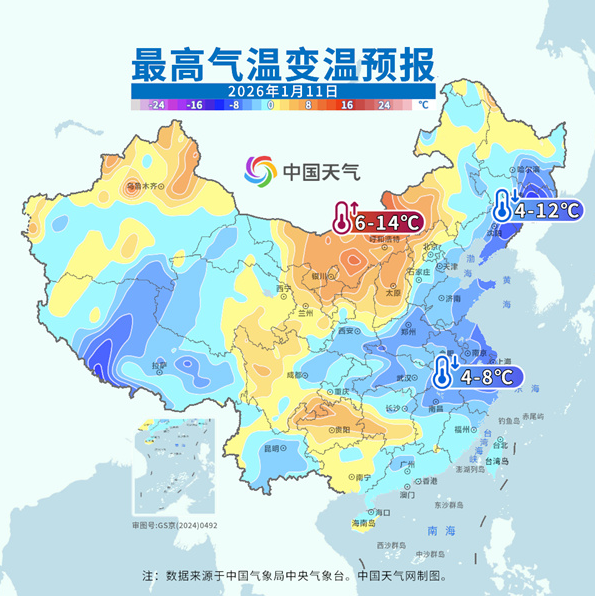 明天,降温将继续向东、向南推进,东北、华北东部、黄淮、江淮等地气温继续下探,同时江南、华南东部等地也会出现小幅降温。