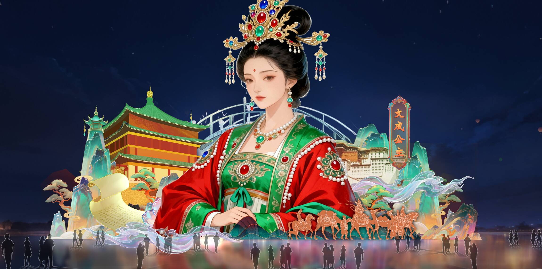 步入灯会,4大主题灯区串联起两公里的沉浸式动线,50余组彩灯尽显“形动新奇美”的艺术精髓。长32米、高18米的《文成公主》巨型灯组堪称视觉焦点,衣袂飘飘的公主身姿温婉,动态光影流转间,千年和亲故事仿佛在眼前重现;“孔孟之乡”灯组以竹简造型镌刻《论语》箴言,灯光亮起时,墨香与光影交织,尽显圣城底蕴;“运河之都”灯组用流动灯光模拟漕运盛景,船帆摇曳、水波粼粼,让人瞬间穿越回运河繁华年代。夜幕降临,非遗打铁花表演压轴登场,五位传承人手持炽热铁水奋力击打,万千火花如星雨坠落,与湖中灯影交相辉映,此刻无需言语,只需静静感受这份极致的绚烂与震撼。