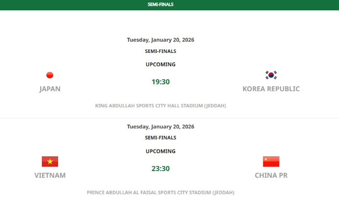 越南 vs 中国,1月20日,23:30