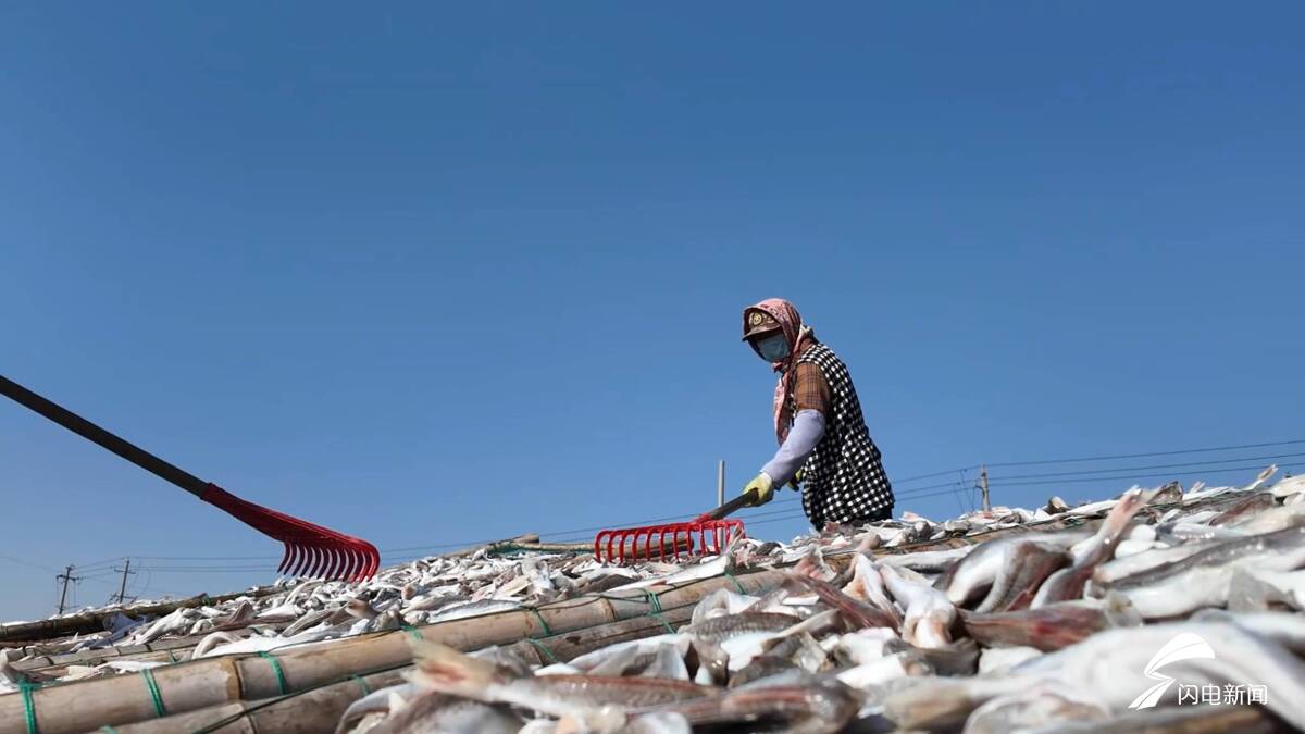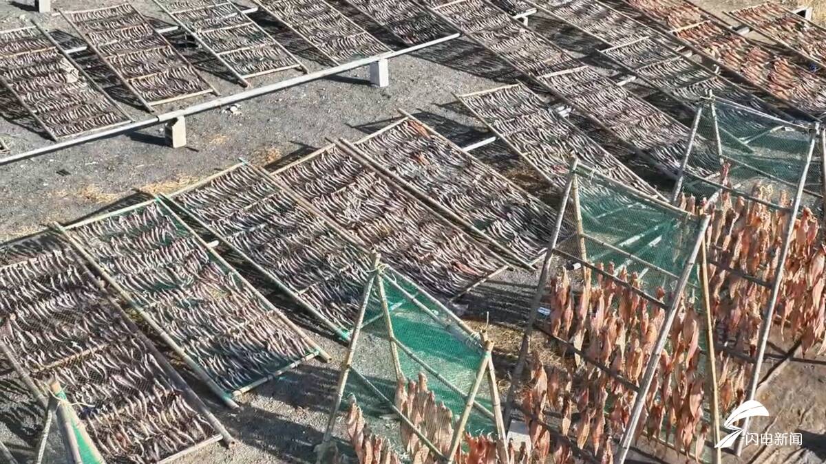 齐鲁网·闪电新闻11月28日讯 随着小雪节气结束,日照市岚山区沿海村落进入鱼干集中晾晒期。渔民利用低温晴好天气,将捕获的海鱼进行传统工艺加工,上万条鱼干悬挂于渔家院落,形成一道独特的海岸线景观。