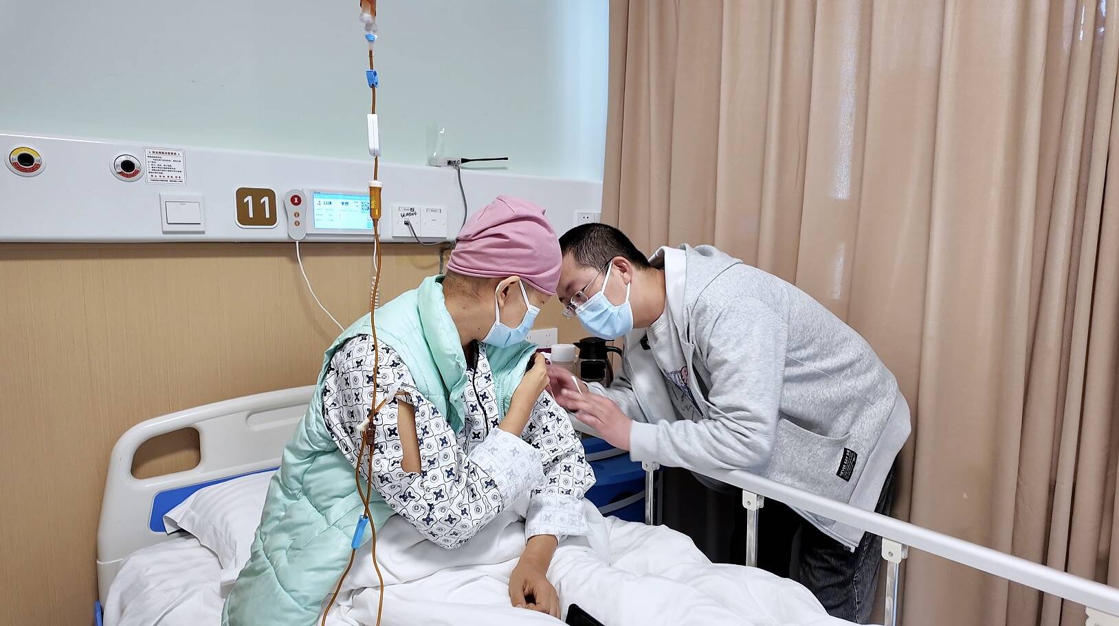 “前期治疗已经花了30多万,现在是第三个化疗周期,后续移植的话大约还要30万到40万,因为化疗过程中很多药不在医保范围之内,所以治疗费用远超我们承受能力!比如每天要吃的靶向药,一盒两万多,只能吃21天,要吃三到五年,按吃三年算的话,就是100多万,这样总共算下来后面还得150多万。现在就是靠借亲朋好友的钱,不管怎样,再难也要治,因为家里的孩子不能没有妈。”贾长龙说起这些,声音忍不住哽咽。