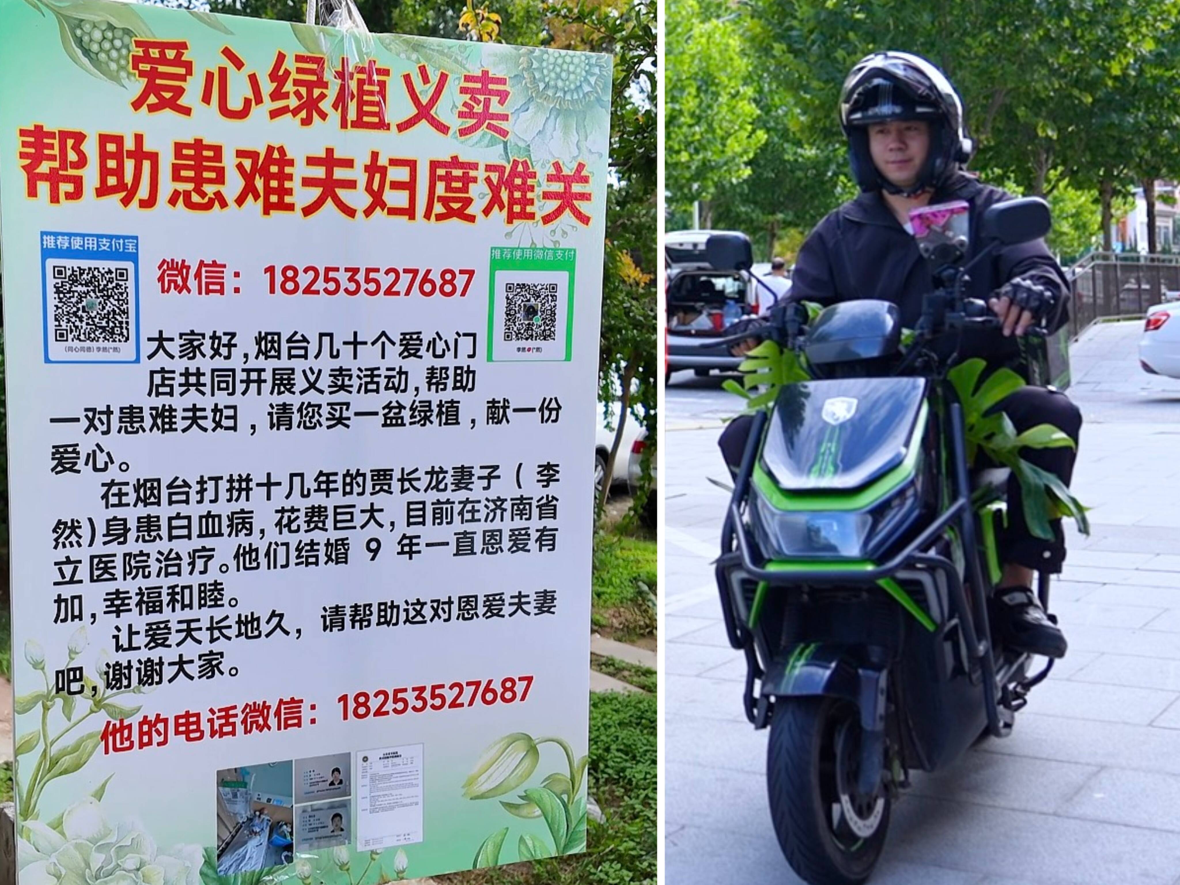 齐鲁网·闪电新闻12月8日讯 十月的烟台,便利店、餐馆、通讯店门前,一盆盆龟背竹、兰花整齐摆放,旁贴的义卖告示,让行色匆匆的路人纷纷驻足。这绿意背后,藏着外卖员王叙光的执着 —— 为拯救挚友贾长龙患白血病的妻子,他凑钱批绿植,奔走上百家店铺沟通,用义卖绿植筹治疗费,他希望通过这种方式唤起大家的爱心,帮助好朋友渡过难关。