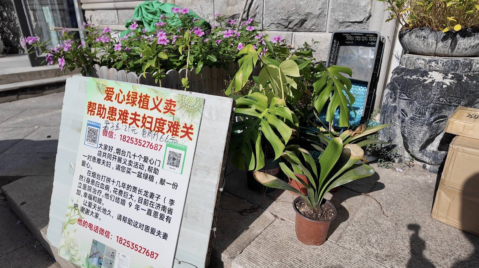 为筹药费,他四处奔走,发动全城70余家商户,参与绿植义卖。
