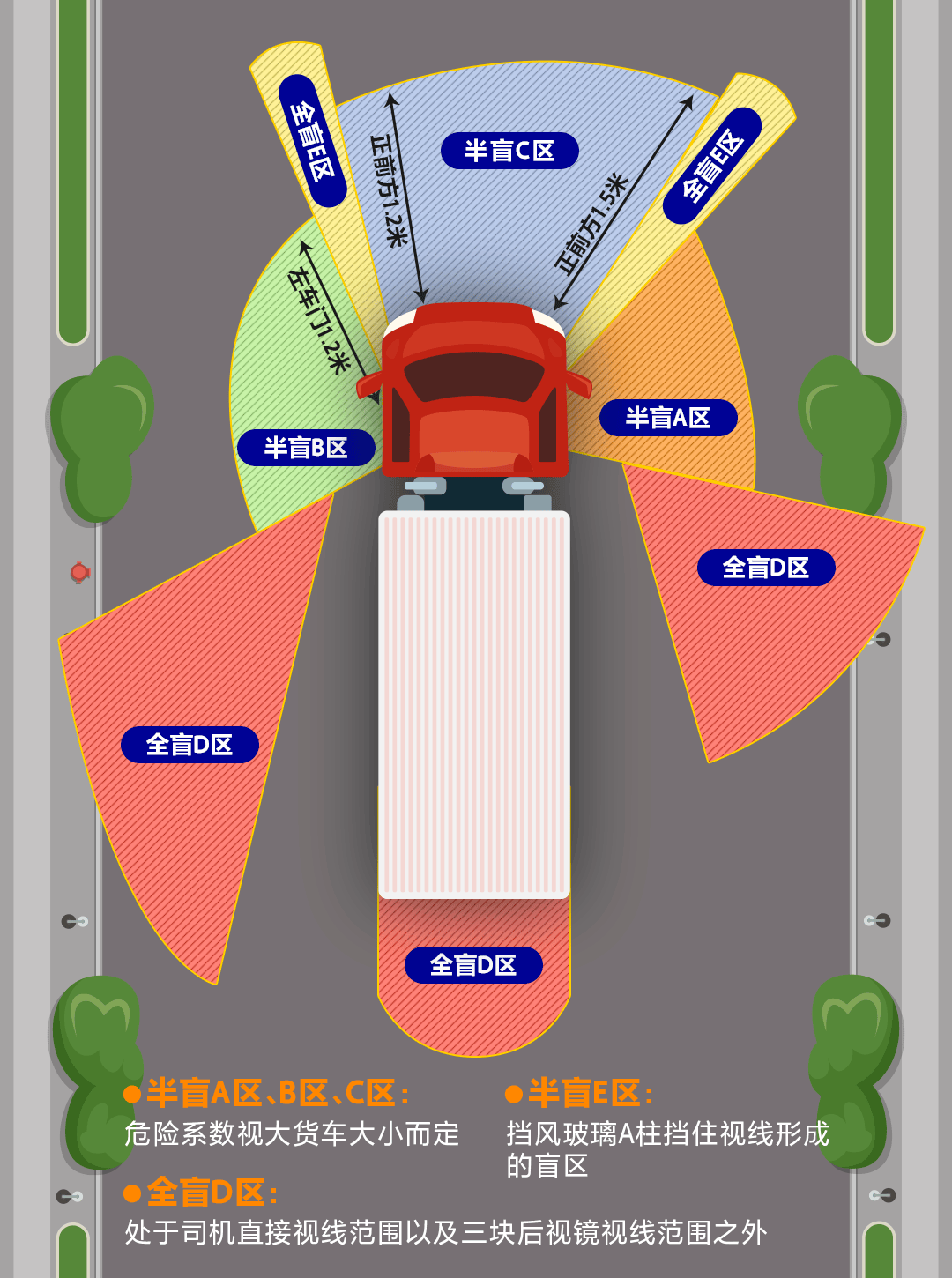 警方提示:大货车、罐车等大型车辆车体高、体型大,相应的盲区面积也更大,驾驶人在起步、过路口、转弯时应当通过后视镜充分观察车辆周围情况。行人、车辆远离大货车,不要与其并行、抢行,不要从其车前或车尾经过,以免被盲区“吞噬”而造成悲剧!