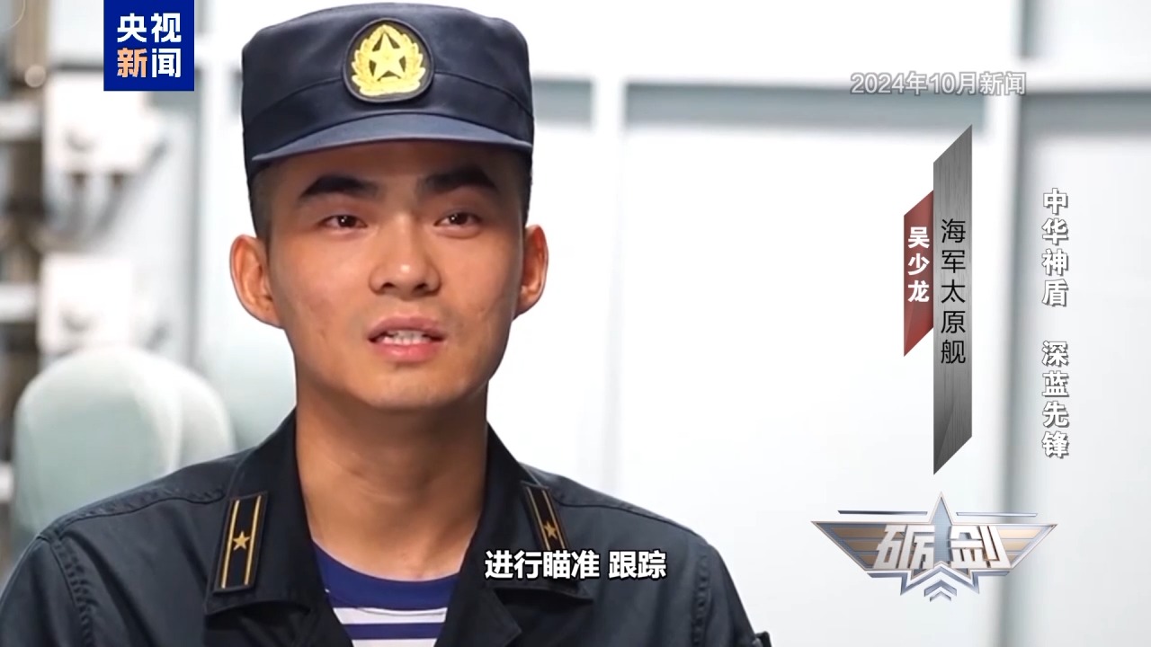 海军太原舰 吴少龙:我们也是全程对它进行瞄准、跟踪,随时都能一箭飞空。它们在对我们舰进行威慑的同时,我们又何尝不是拿着“匕首”抵着它 。