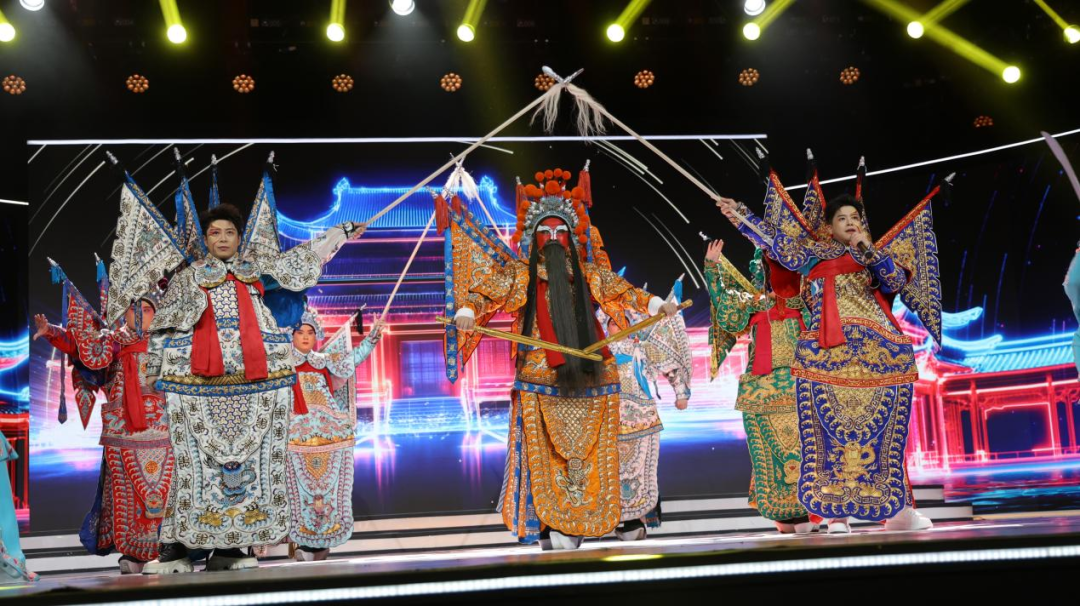 创意融合秀《门神说》:歌手身着秦琼、尉迟恭戏曲服饰登场,将古风戏曲融入动感说唱,歌词串联齐鲁多地民俗,让传统门神形象焕发年轻活力,传递满满年味与平安期许。