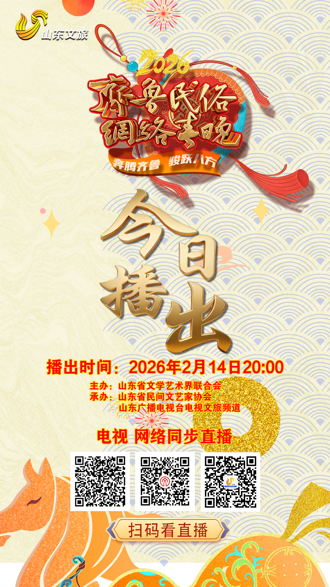 承民俗之美,传时代新韵。今天(腊月二十七)20:00,2026齐鲁民俗网络春晚与您温暖相约。