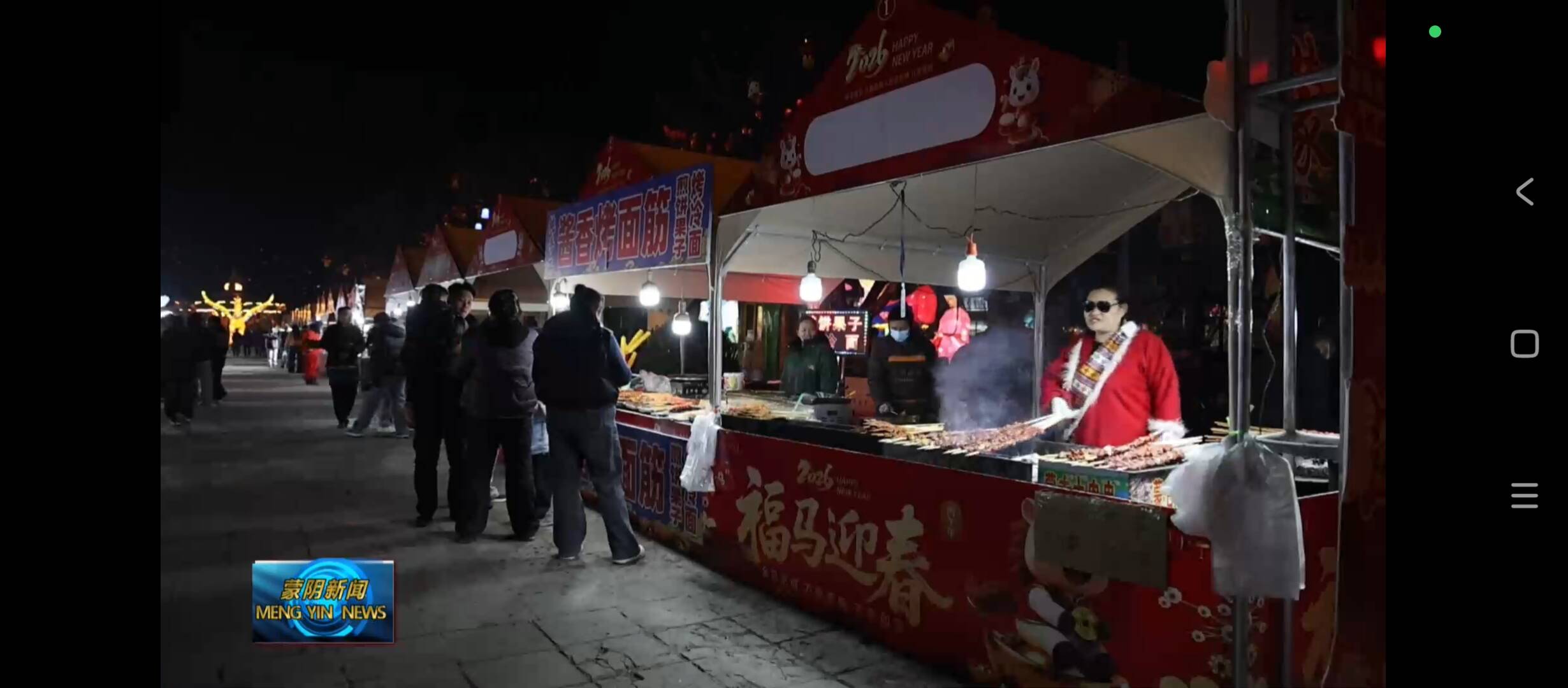 除了精彩的视觉呈现,年会还汇集了众多美食摊位,为游客带来舌尖上的体验。升腾的烟火气和地道小吃,唤醒了人们记忆中的老蒙阴年味。