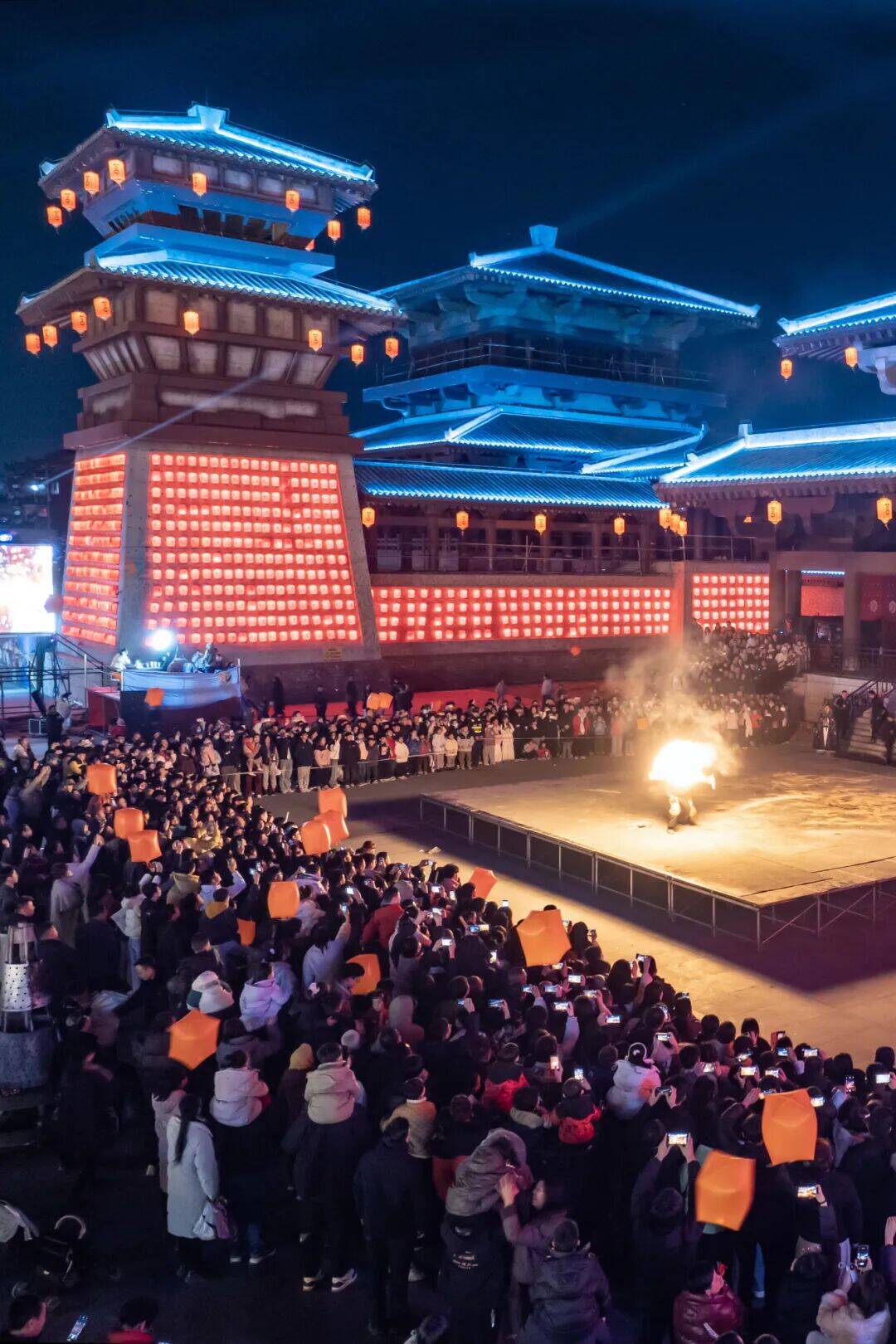 人潮涌动不夜天,古韵新风两相宜。从清晨到深夜,古城的脉搏始终热烈跳动。国潮演绎区里,传统戏曲与现代节奏碰撞出别样火花;仙侠市集中,身着古装的NPC(非玩家角色)与游客擦肩而过,恍若穿越时空;祈福区里,一盏盏孔明灯载着心愿升空,将夜空点缀得星星点点。非遗火秀表演时,匠人将滚烫的铁水抛向高空,刹那间火花四溅,如流星雨般坠落人间,引得满堂喝彩。花灯巡游的队伍穿街而过,所到之处,皆是欢呼与惊叹。