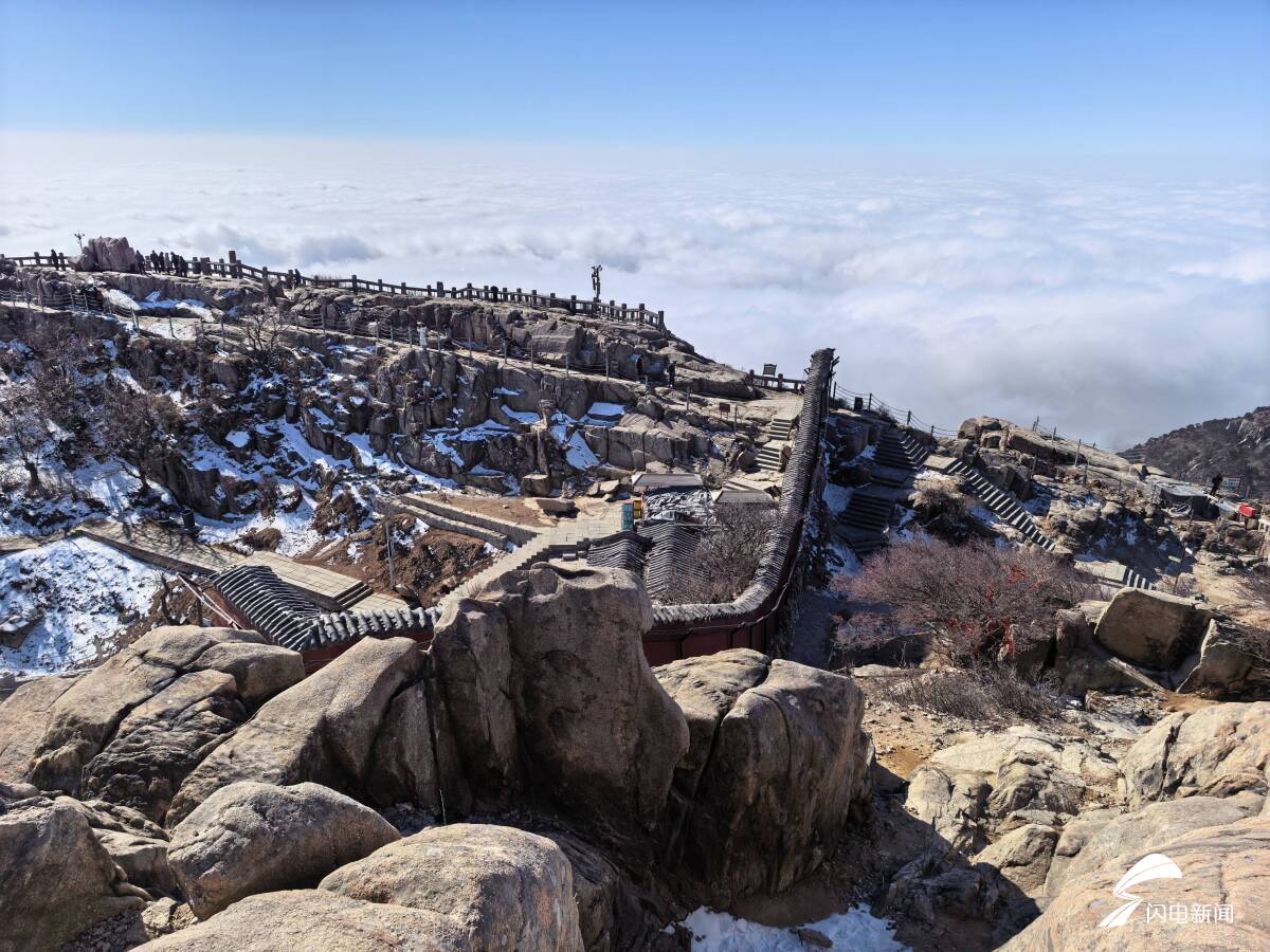 齐鲁网·闪电新闻2月26日讯 2月25日,泰山出现绝美云海盛景。当云雾漫过泰山之巅,如沧海奔涌,雄浑与缥缈在此相融。风过云动,山色入画。此刻登临,不问凡尘,只赏这人间难得的仙境盛景。