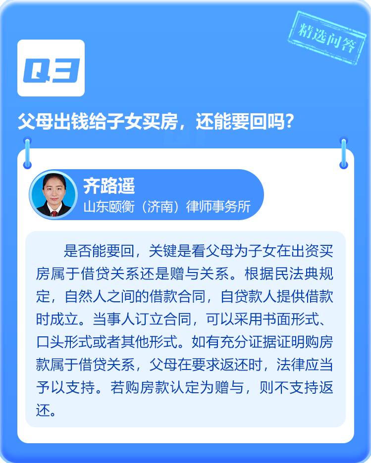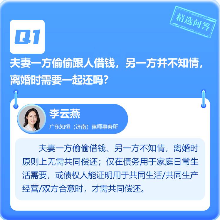 夫妻一方隐瞒另一方借钱,离婚时需要一起还吗?公益性岗位从业人员与用人单位之间是否属于劳动关系?父母出钱给子女买房,还能要回吗?让我们一起来看“闪电律师团”本周精选问答!